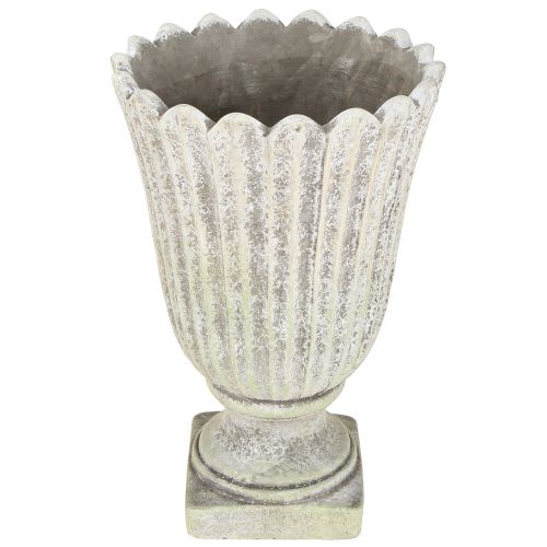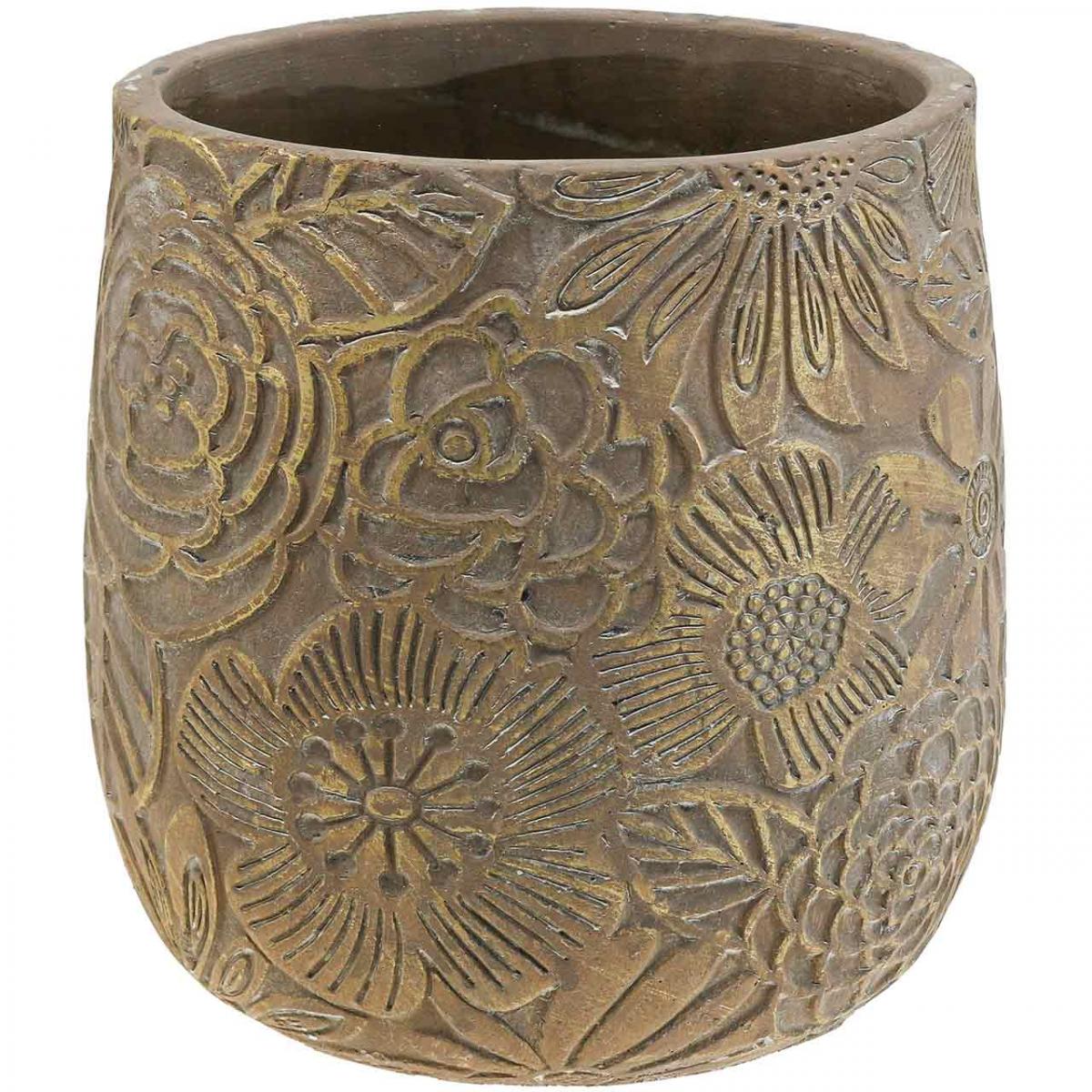Der weiß gewaschene Look und die goldenen Blüten machen den Übertopf vor allem für den Landhausstil interessant. Leichte, einzelne dunkle Flecken suggerieren außerdem ein gewisses Alter, was wiederum wunderbar zum Vintage-Charme passt.