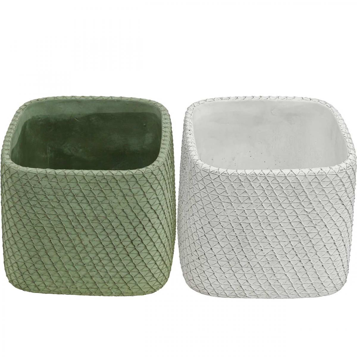 Übertopf Keramik Weiß Grün Relief Netz 12,5x12,5cm H9cm 2St