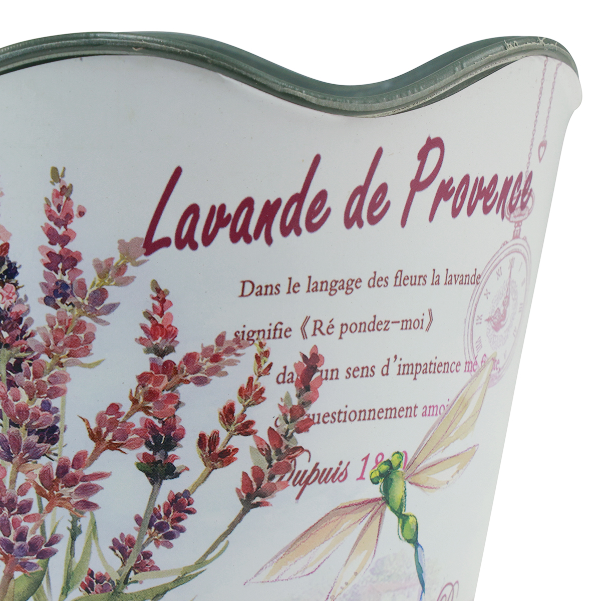 Der Topf ist im Ganzen aus robustem Kunststoff gegossen. Der Lavendel-Übertopf eignet sich deshalb als Pflanzgefäß. Mit der französischen Aufschrift des Prints, die sich auf die Lavendelfelder der Provence bezieht, und Retro-Motiven strahlt der Plastik-Blumentopf Nostalgie aus. Die Ränder sind schön gewellt.