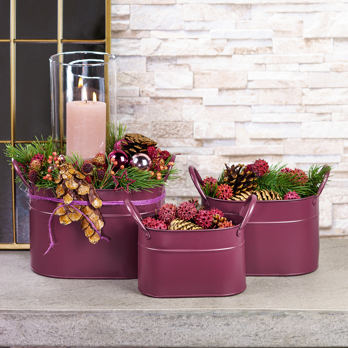 Übertopf Metall oval Pflanztopf Lila 24/21/18cm Set à 3St