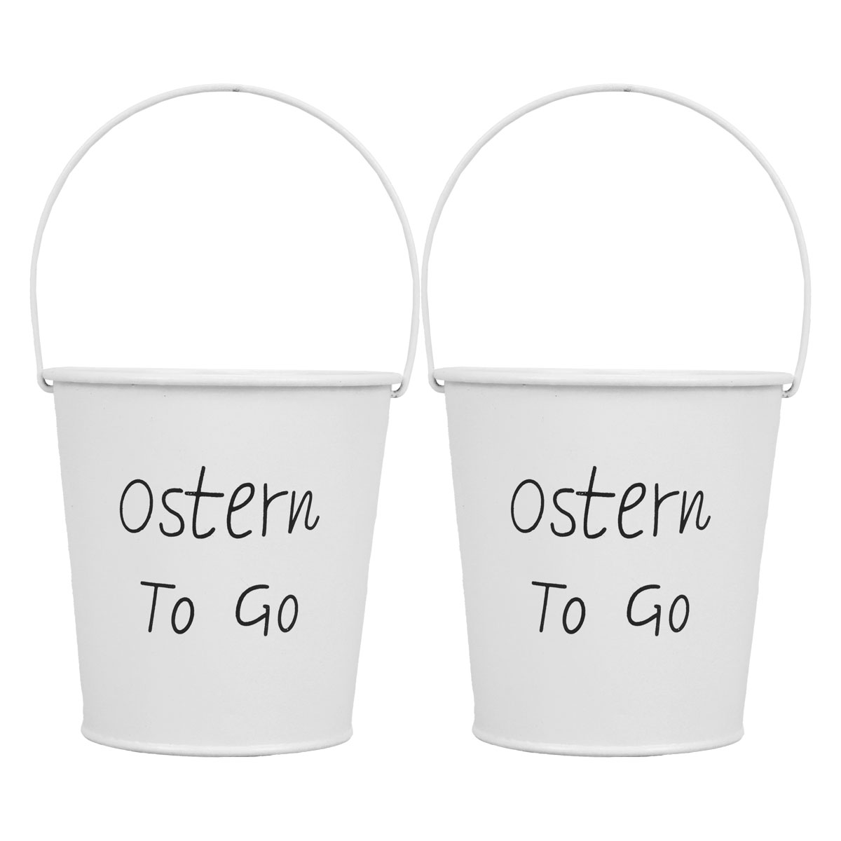 Übertopf Ostern Blumentopf Metall Eimer Weiß 10,5cm 3 St