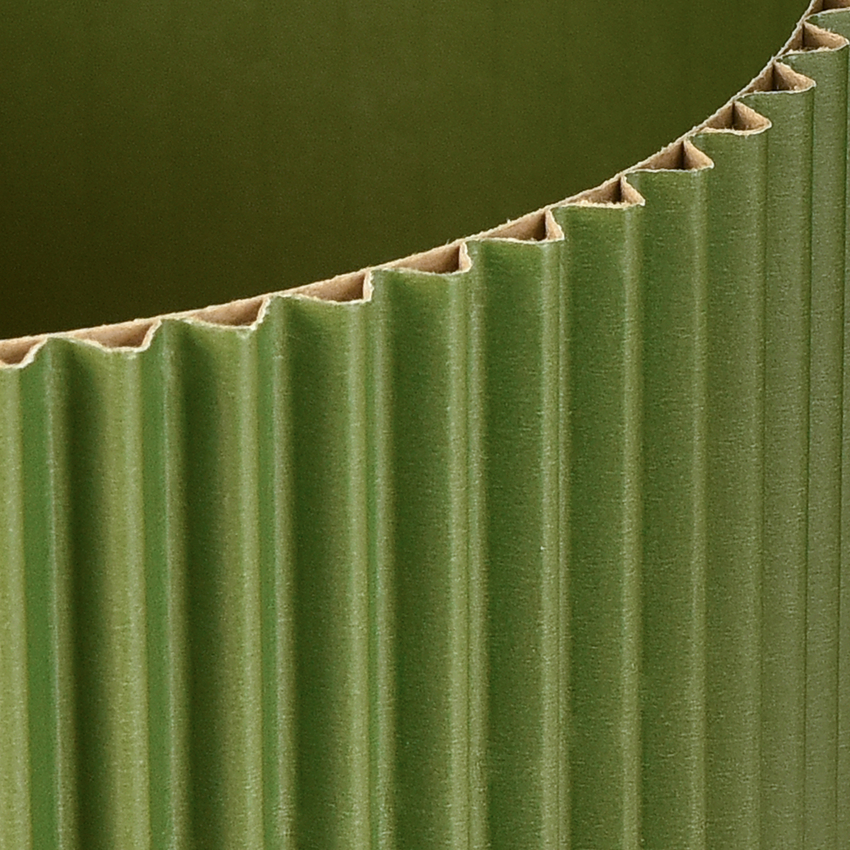 Der elegante Übertopf in Dunkelgrün aus Papier setzt dekorative Akzente in jedem Raum. Mit einem Durchmesser von etwa 19 cm und einer Höhe von circa 14 cm ist dieser Blumentopf optimal für mittelgroße Pflanzenarrangements geeignet. Das moderne Design mit gerippter Außenseite verleiht ihm eine interessante Textur. Somit ist der Topf ideal für Wohnzimmer, Büros oder als kreatives Geschenk. Bitte beachten Sie, dass der Übertopf vor der Nutzung mit lebenden Pflanzen mit Folie ausgekleidet werden sollte, um ihn vor Feuchtigkeit zu schützen. Der Blumentopf eignet sich perfekt für dekorative Pflanzenarrangements zu Hause oder für floristische Präsentationen und Schaufenster.