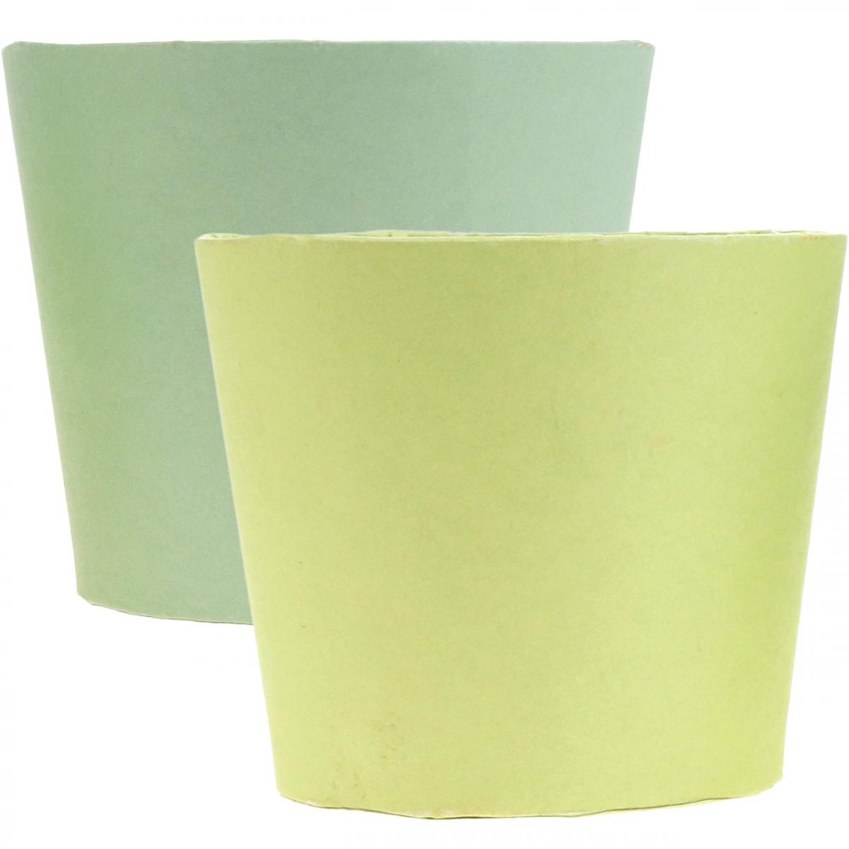 Produktname: Übertopf aus Papier, Pflanzgefäß, Kräutertopf Blau/Grün Ø15cm H13cm 4St