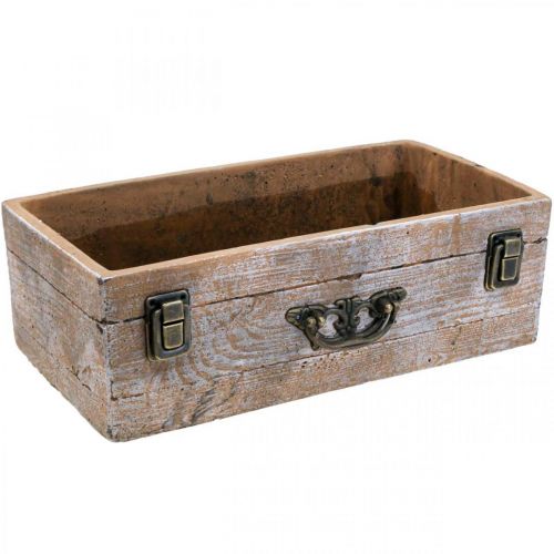 Der Übertopf präsentiert sich als Pflanzschublade aus Beton mit antikem Chic. Struktur, Bemalung und weiße Waschung lassen diesen Pflanzkasten ganz wie eine Schublade aus Holz wirken. Dazu kommen die verschnörkelten Beschläge, die bei dieser Beton-Deko völlig echt und aus Metall sind.Spannende Deko für die Fensterbank oder ganzjährige Tischdeko lässt sich mit dem Übertopf als Pflanzschublade höchst abwechslungsreich gestalten. Legen Sie einen Steckschaumziegel in die Pflanzschublade und bedecken Sie ihn mit Moos. Dazu passen Zapfen, ein kleines Kerzenglas, Streudeko oder Dekostecker der Saison.