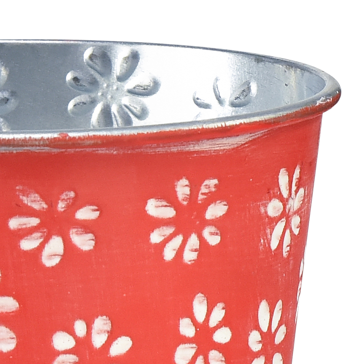 Übertopf Rot Weiß Mini-Blumentopf geblümt Metall Ø10,5cm H10,5cm