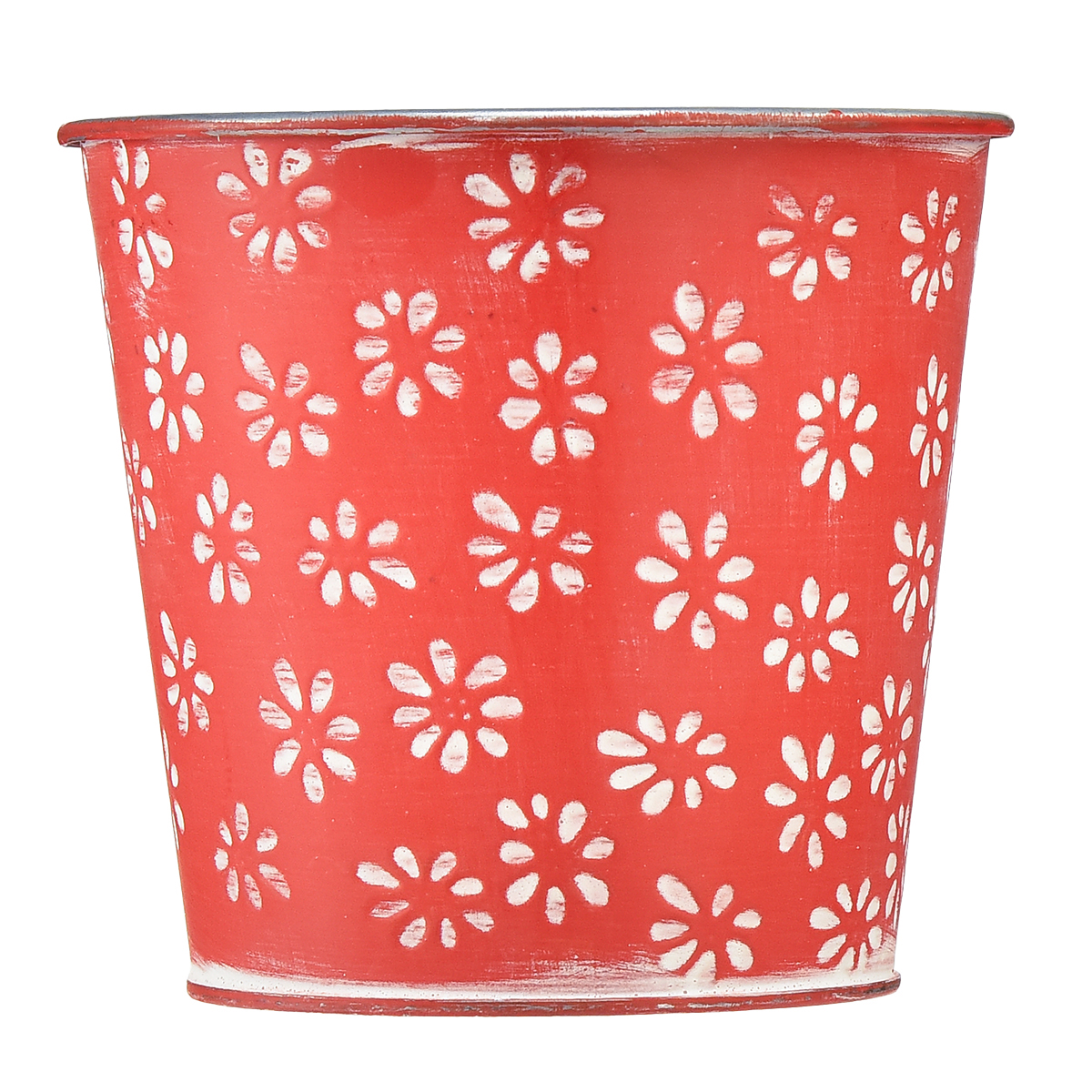 Produktname: Übertopf Rot Weiß Mini-Blumentopf geblümt Metall Ø10,5cm H10,5cm