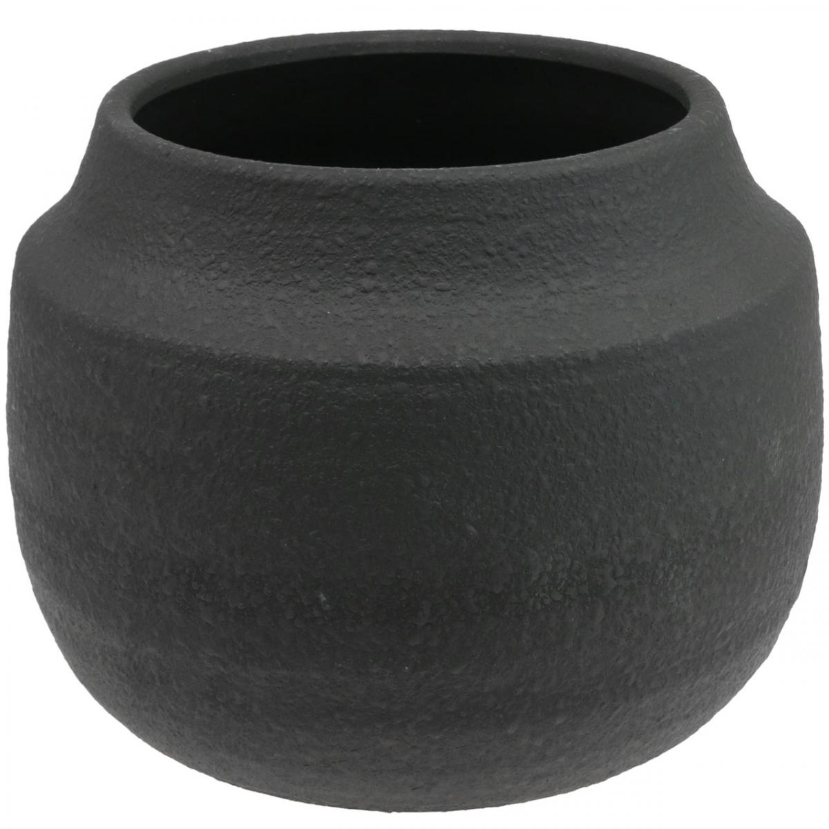 Wie gemacht für angesagte Dekorationen in Schwarz-Gold scheint dieser Übertopf in Schwarz zu sein. Bauchig geformt, verjüngt sich der Blumenkübel zur Mündung wie bei einer besonders korpulenten Vase.Der große Übertopf aus Keramik weist viele kleine Sprenkel auf der Oberfläche auf, sodass er besonders rustikal erscheint. Die raue Oberfläche des Deko-Übertopfs hat jedoch keinen Einfluss auf die Farbe. Denn der Blumenkübel ist vollständig in Schwarz getaucht.