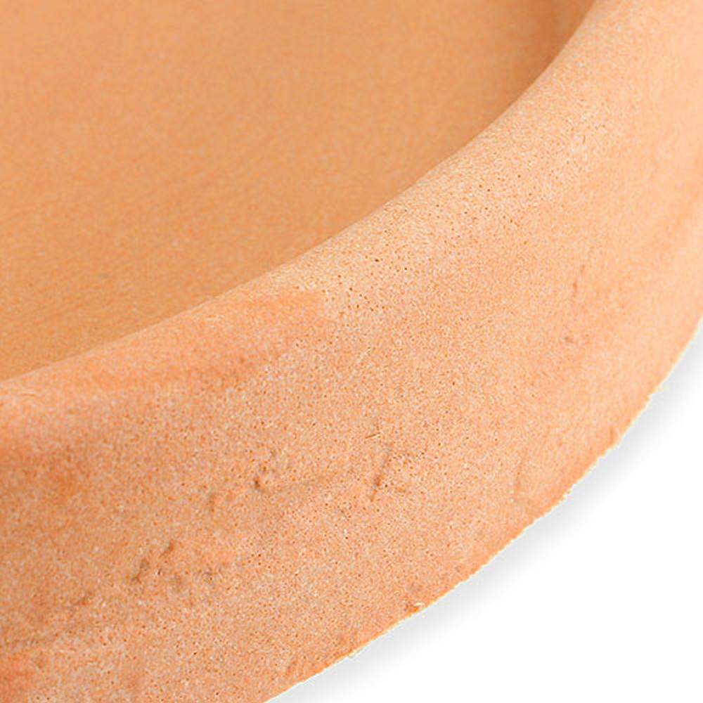 Der Untersetzer „Marcella“ in der Farbe Terrakotta hat außen einen Durchmesser von etwa 35 Zentimetern und innen einen Durchmesser von ungefähr 29 Zentimetern. Die Höhe beträgt dabei circa 4 Zentimeter.