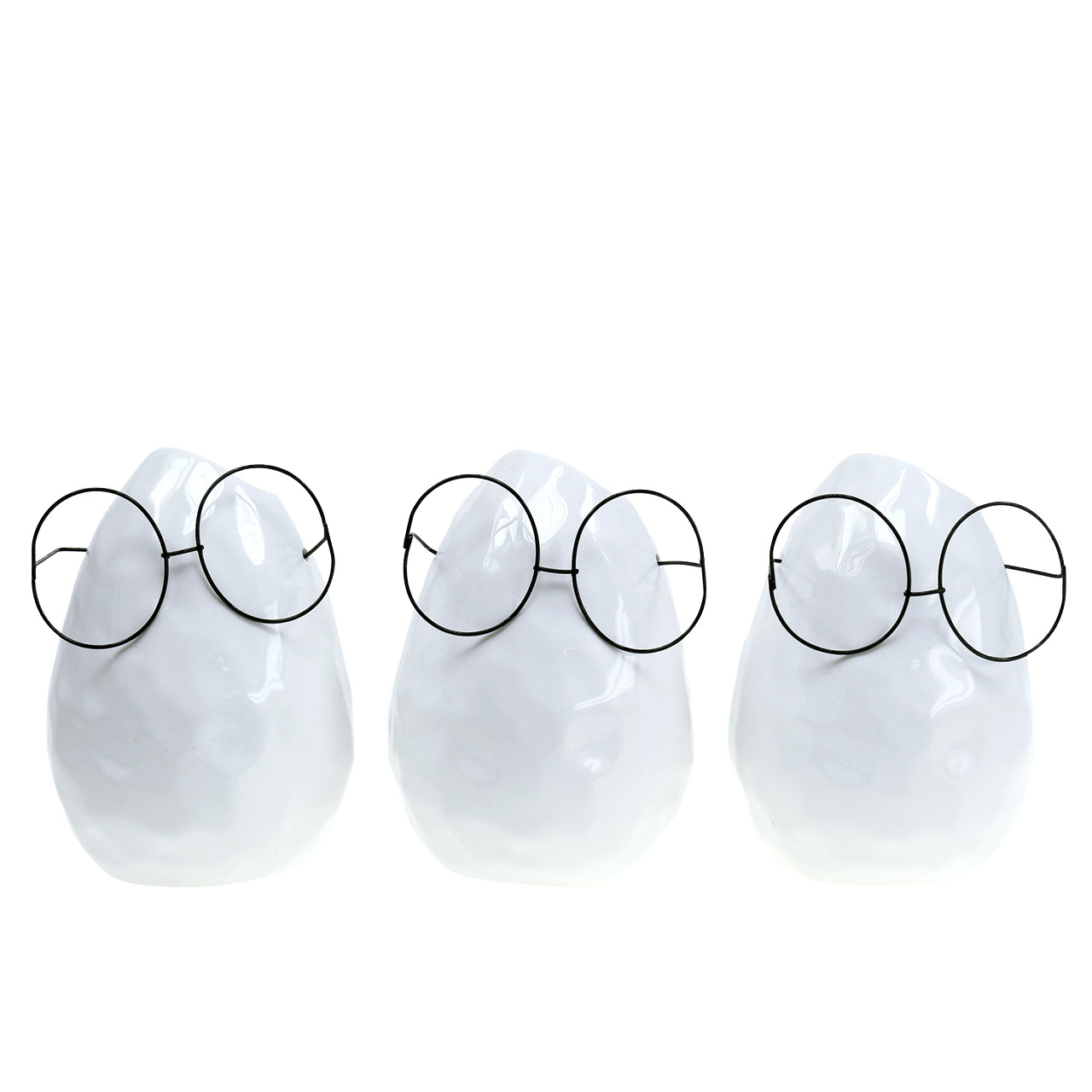 Produktname: Vase mit Brille Osterdeko Keramik Weiß Ø8,5cm H13cm 3 St