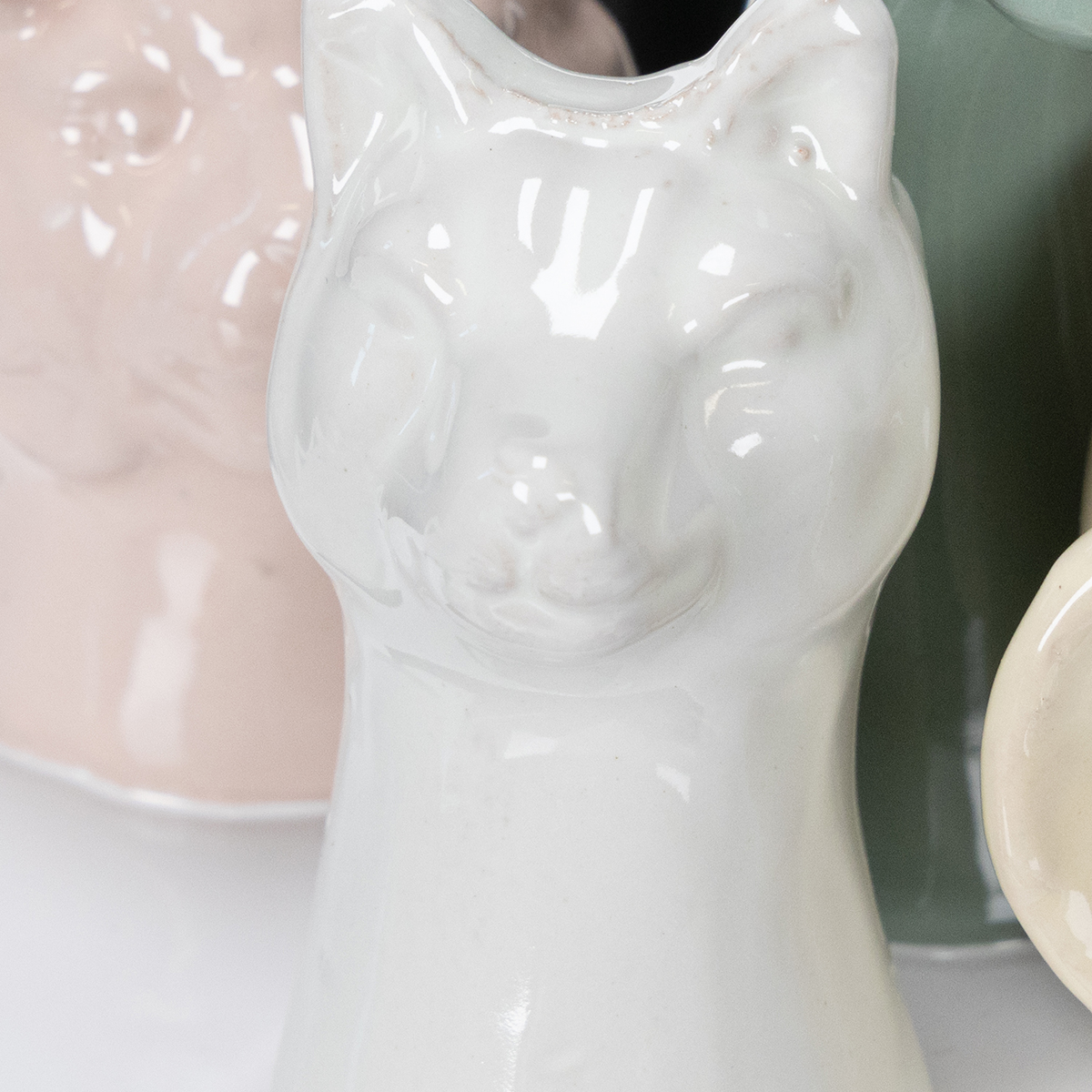 - Material: Hochwertige Keramik in Weiß, Rosa und Gelbtönen.