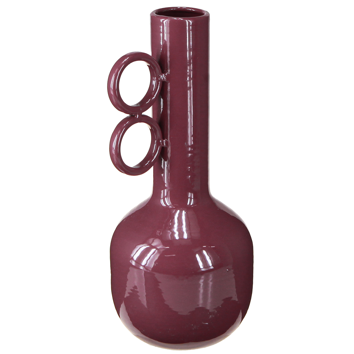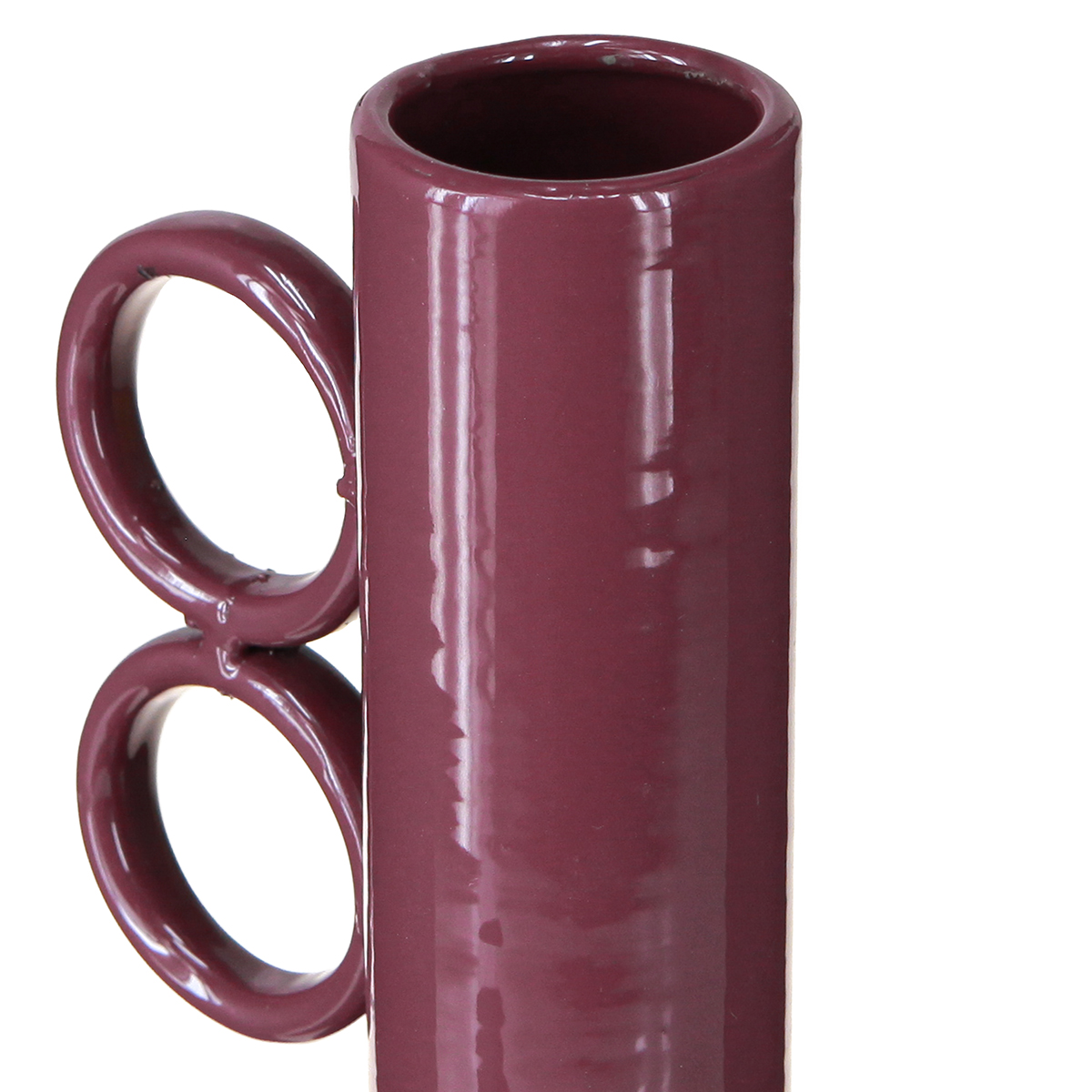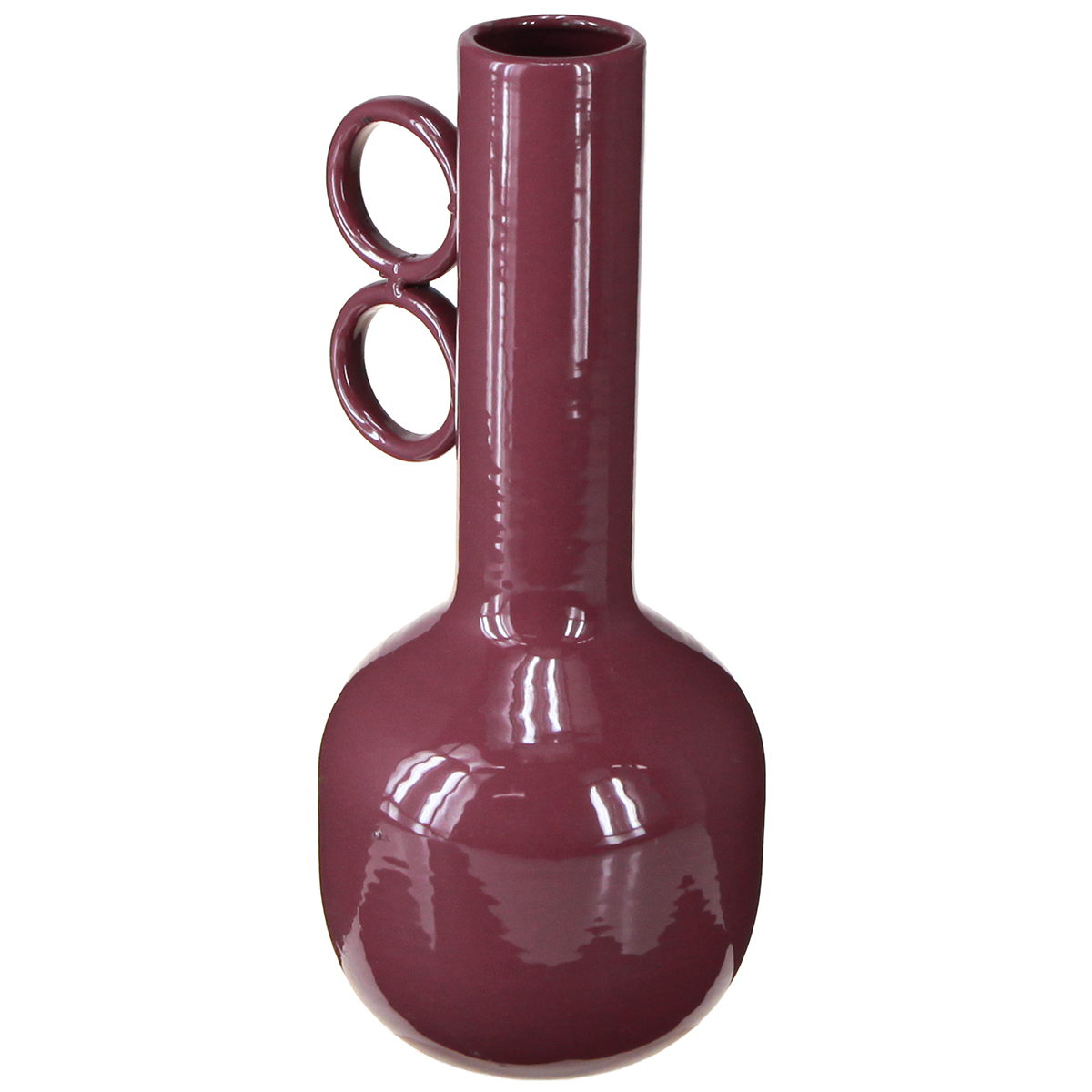 Die Vase überzeugt durch ihr raffiniertes Zusammenspiel aus Form und Funktion. Ihr schlanker, langer Hals verleiht ihr eine gewisse Anmut und macht sie ideal, um langstielige Blumen stilvoll in Szene zu setzen. Die runden Griffe – ein echter Blickfang – sind nicht nur dekorativ, sondern unterstreichen den zeitgenössischen Charakter dieses Stücks. Gefertigt aus solidem Metall, punktet die Vase nicht nur optisch, sondern auch durch ihre langlebige Qualität. Die glänzende rote Oberfläche verleiht ihr eine luxuriöse Anmutung und macht sie zum Eyecatcher in jedem Raum.