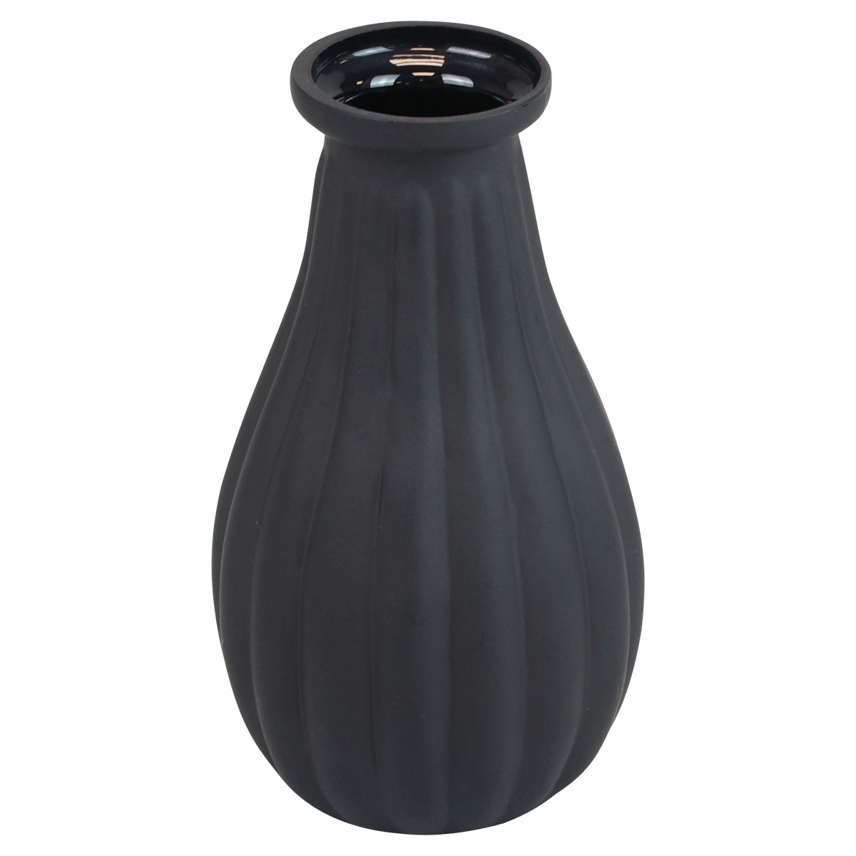 Vase Schwarz Glasvase Rillen Dekovase Glas Ø8cm H14cm