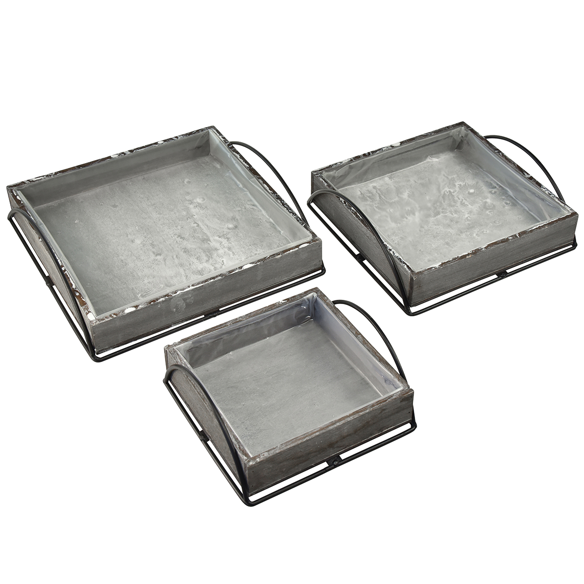 - Set aus 3 verschieden großen, grauen Holztabletts