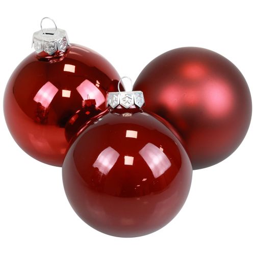 Die massiven Weihnachtskugeln kommen sortiert zu sechs Stück. Jede der außergewöhnlichen Weihnachtskugeln besitzt einen Durchmesser von etwa 9,5 Zentimetern und ist an der Oberseite mit einem messingfarbenen Abschluss und einem Ring zum Aufhängen versehen.