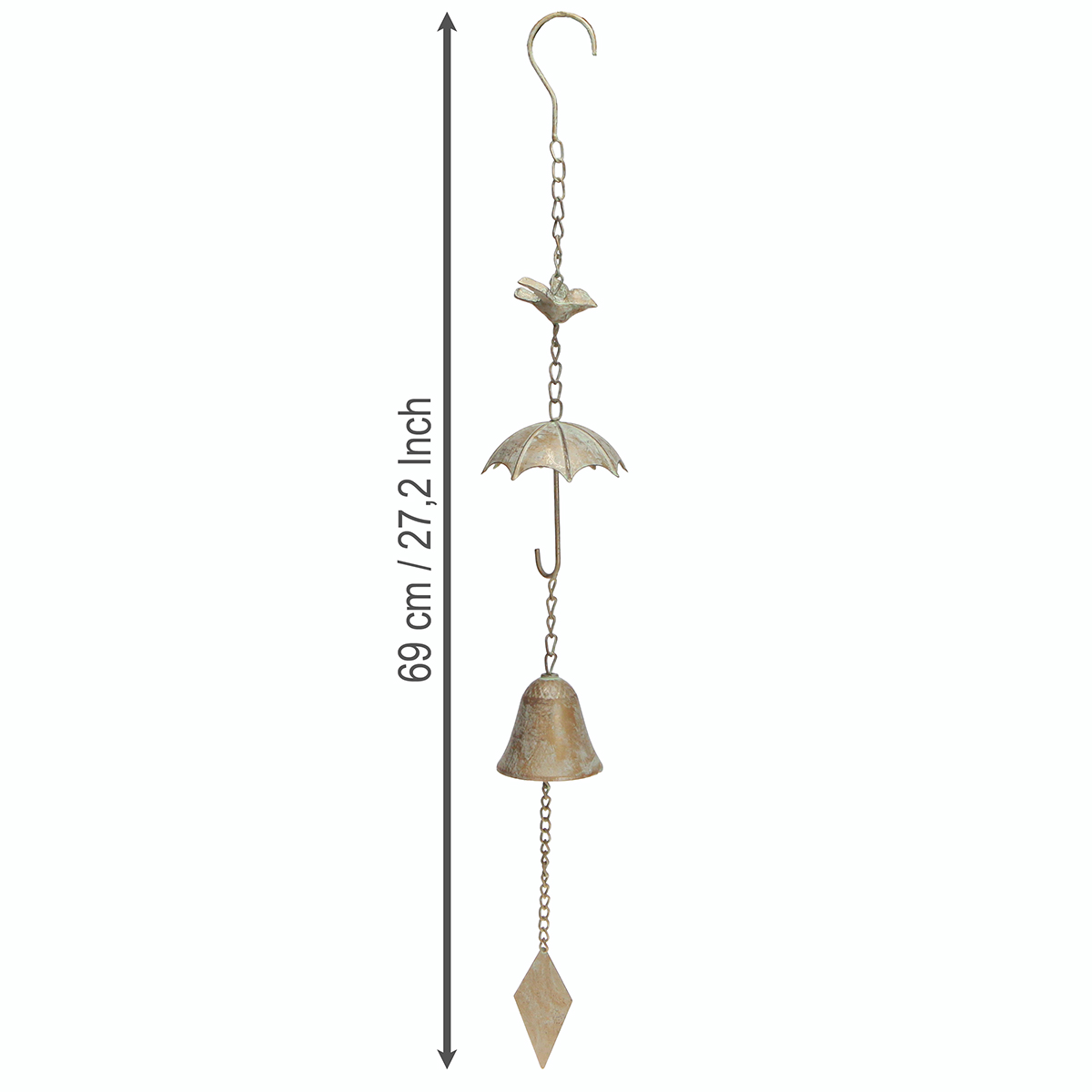 Produktname: Vintage Windspiel Metall Deko mit Schirm und Glocke 70cm