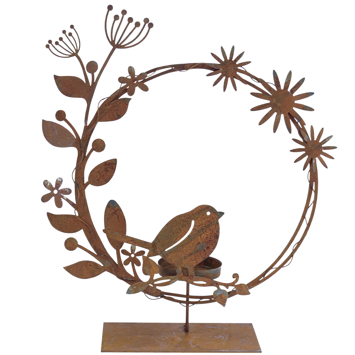 Vogel Deko Blumen Teelichthalter Rost Optik 24×27×6cm
