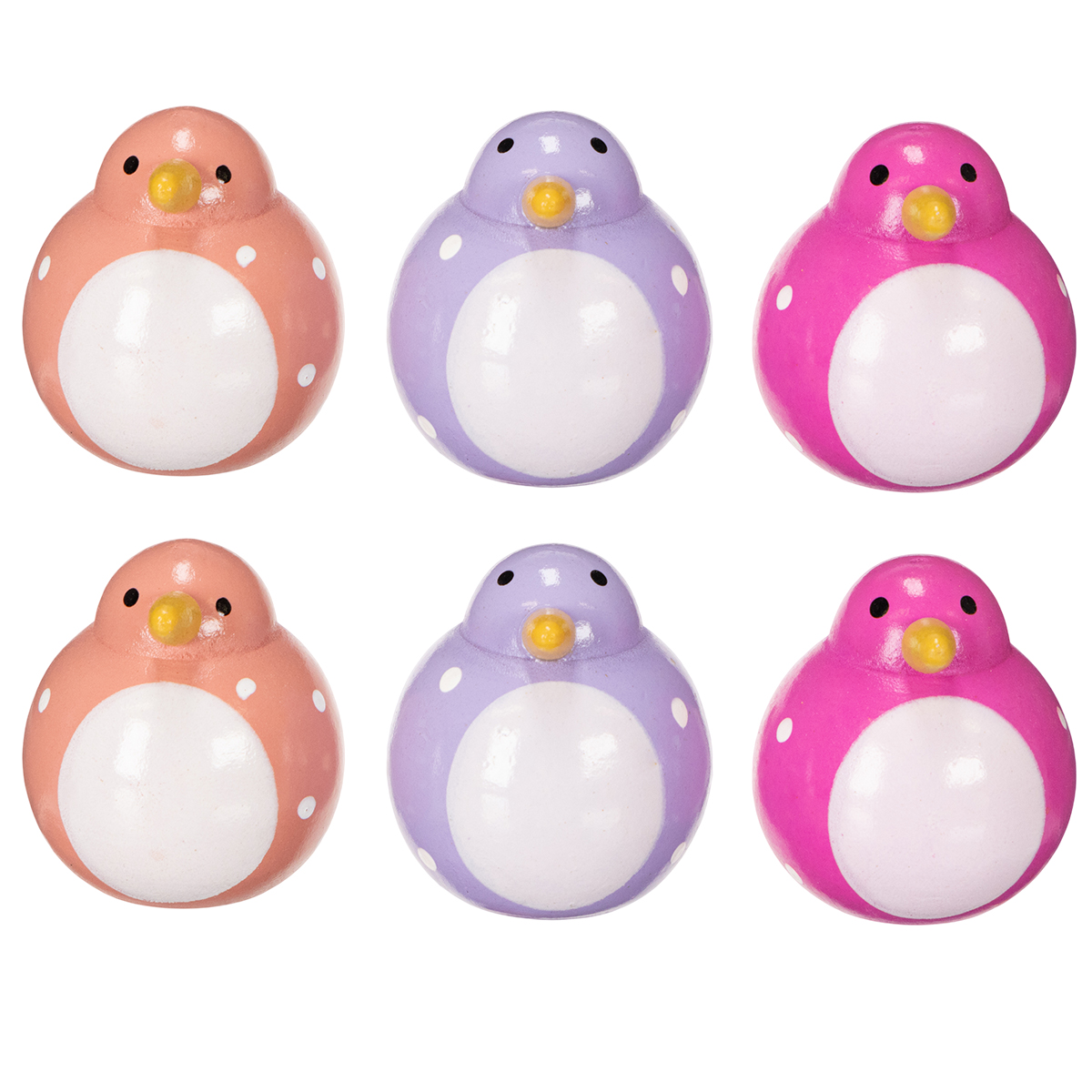 Dieses Set aus sechs kleinen Vogel-Dekofiguren begeistert auf den ersten Blick! Die Figuren sind liebevoll gestaltet und in den Farben Lila, Rosa und Pink dreifarbig sortiert, was für eine harmonische und dennoch lebendige Farbmischung sorgt. Mit einer Größe von 6 Zentimetern passen sie perfekt in jedes Arrangement und wirken aufgrund des niedlichen Punktmusters besonders charmant. Die Kombination aus sanftem Lila und den kräftigen Akzenten der anderen Farben lässt die Vögel zugleich dezent und ausdrucksvoll wirken.