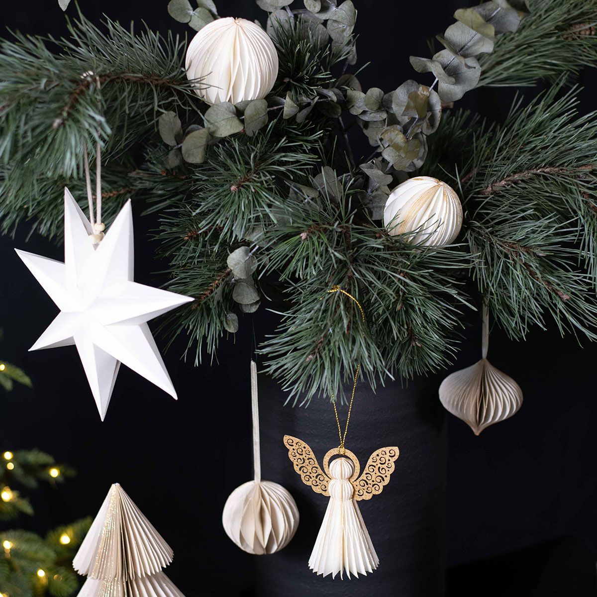 Und wenn Sie die Wabenkugeln mit noch mehr Wabenbällen und anderen Papierfiguren kombinieren möchten, werden Sie zahlreiche Kugeln, aber auch Papierengel und Papierweihnachtsbäume in unserem Weihnachtsdeko-Sortiment entdecken.