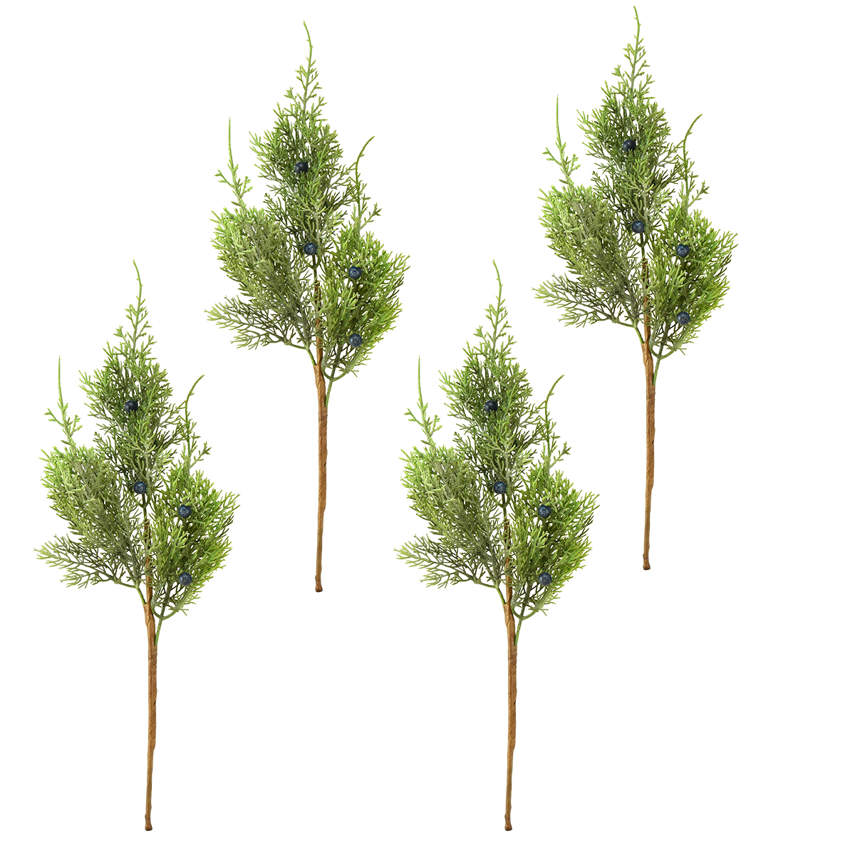 Produktname: Wacholder Kunstzweige mit Beeren Grün Blau 42cm 4er Set Deko Weihnachten