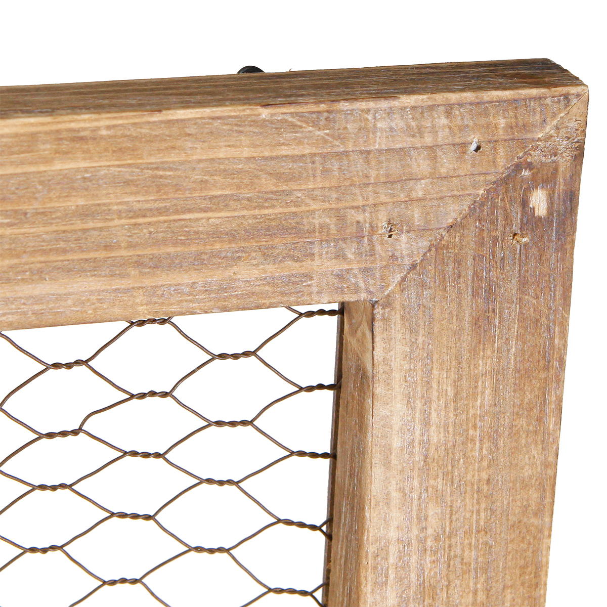 - Materialien: lasierter Holzrahmen mit braunem Maschendraht
