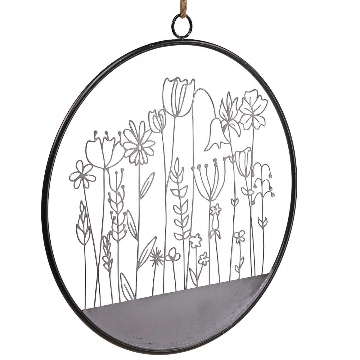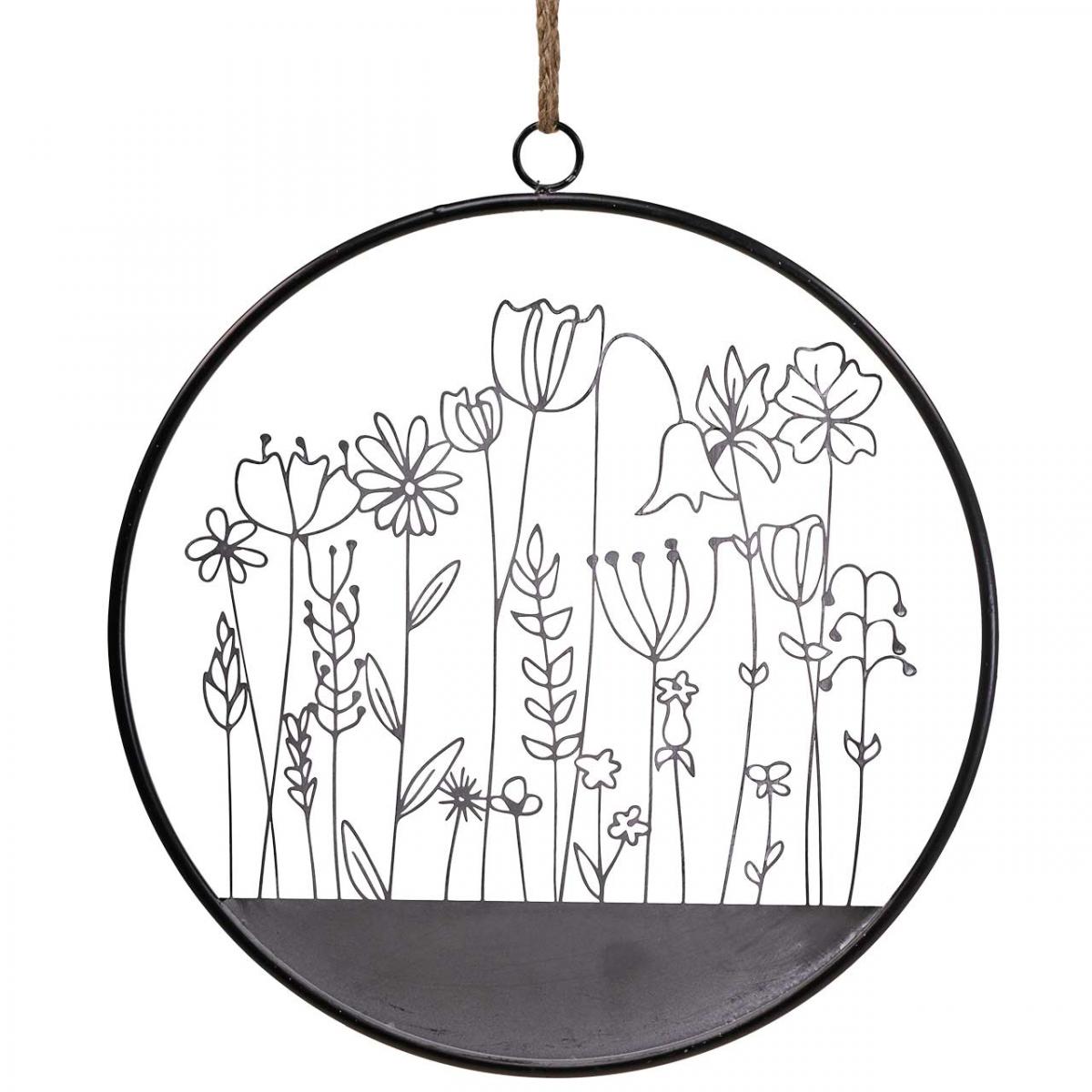 Wanddeko Blumen Ring Sommerdeko Metall Grau/Schwarz Ø38cm