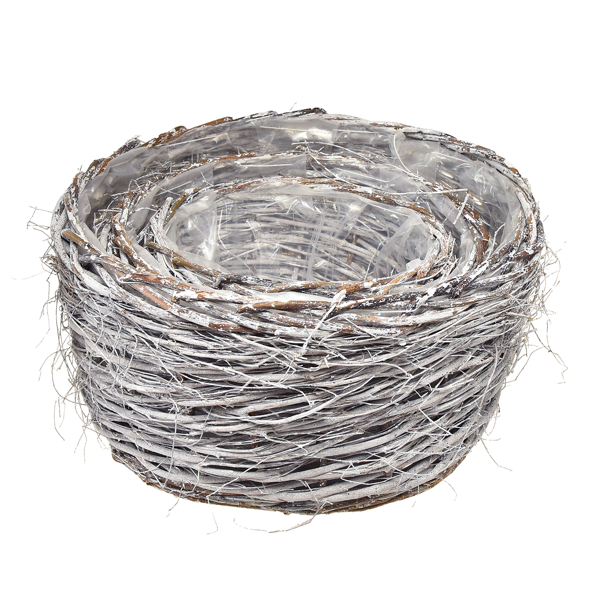Unsere rustikalen Weidenkörbe verkörpern mit ihrer natürlichen Grautönen und dem sanft weiß gewaschenen Finish ländliche Herzenswärme. Die Größen 40cm, 33cm und 26cm sind folienausgelegt und bieten eine Vielfalt an Einsatzmöglichkeiten – seien es stilvolle Pflanzgefäße oder eine ästhetische Aufbewahrungslösung. Dank der robusten Tragegriffe ist der Transport ein Leichtes. Idealerweise bewähren sich unsere Körbe auch in der dezenteren Rolle als Ergänzung zu Wohnaccessoires im maritimen, skandinavischen oder auch klassischen Stil, indem sie die natürliche Komponente betonen.