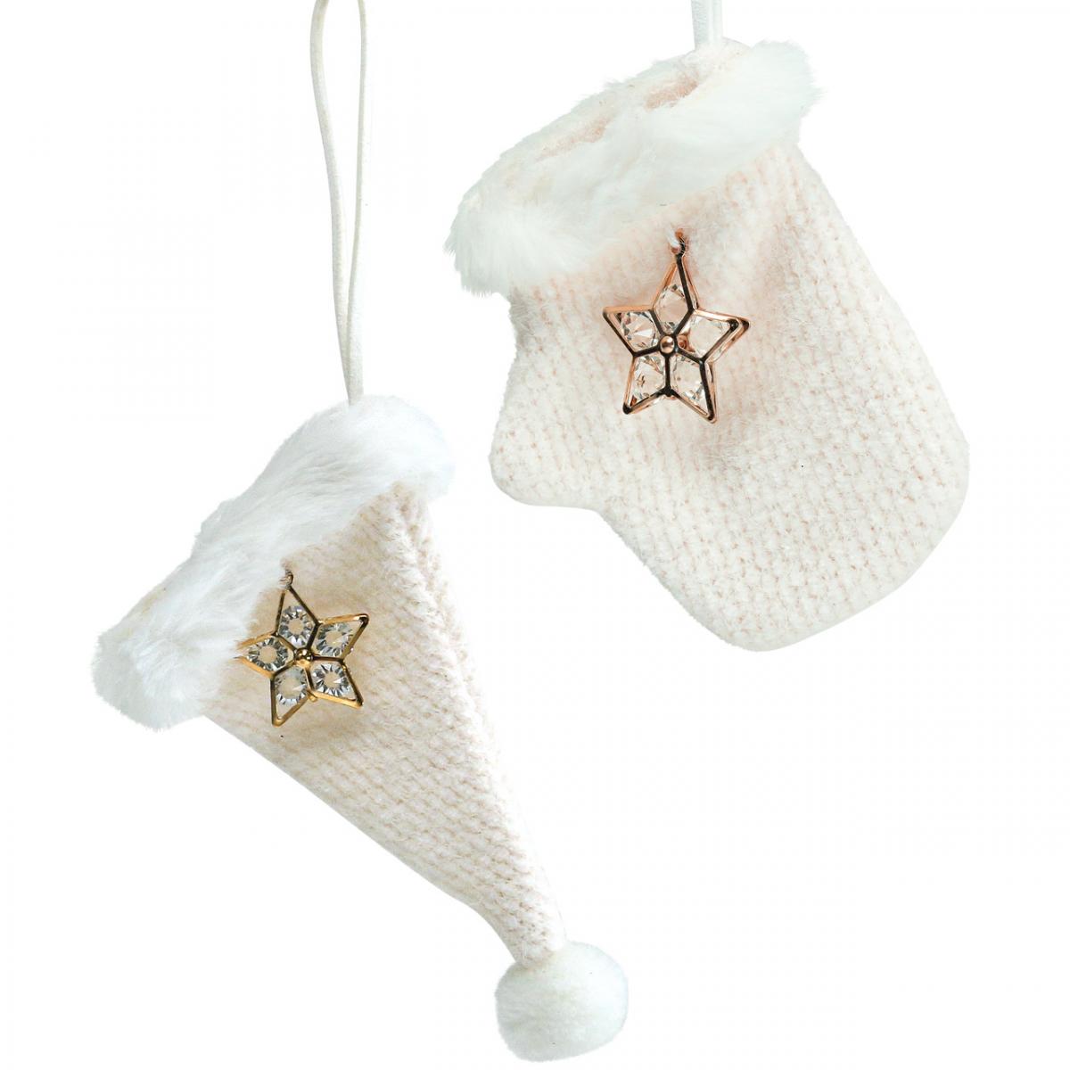 Weihnachtsanhänger Filz Handschuh Zipfelmütze Creme 6St