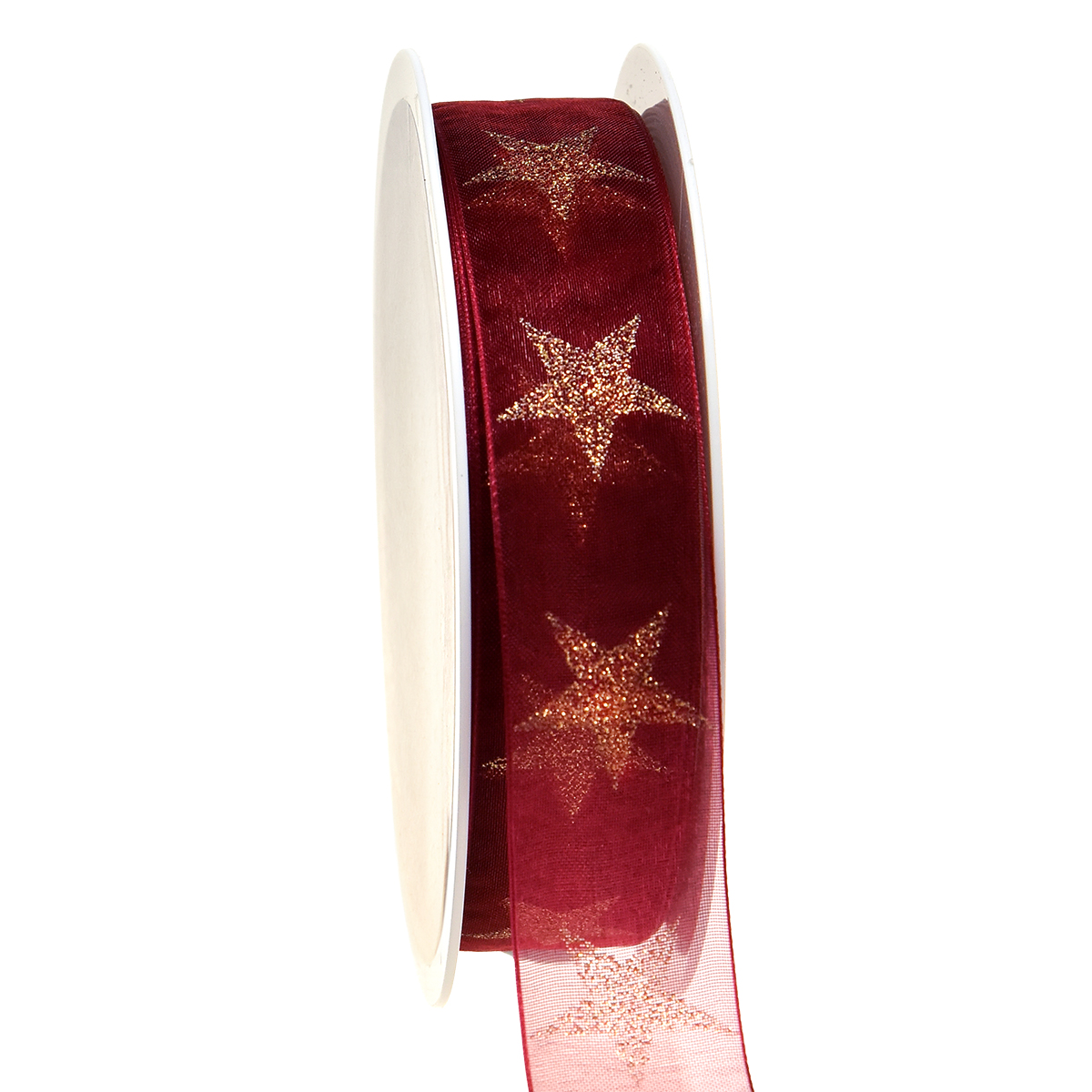 Weihnachtsband Dunkelrot Gold mit Sternen B25mm L18m
