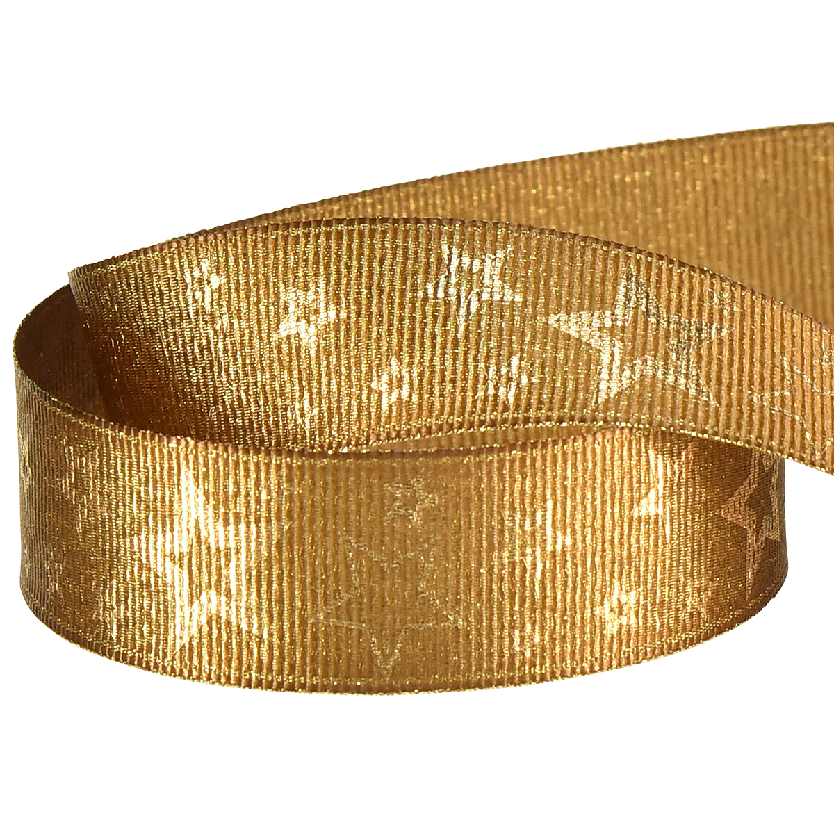 Weihnachtsband Gold Schmuckband mit Sternen B25mm L15m