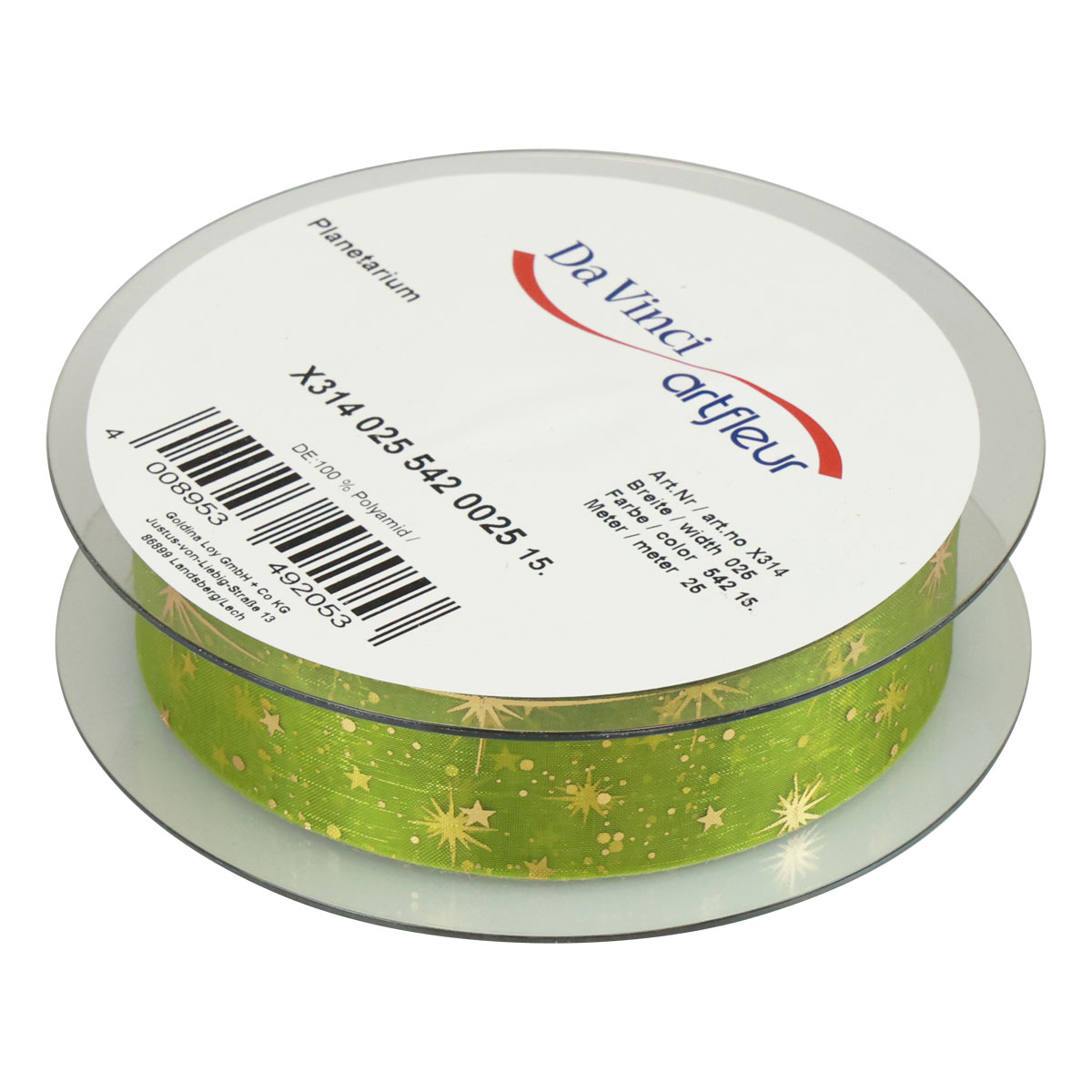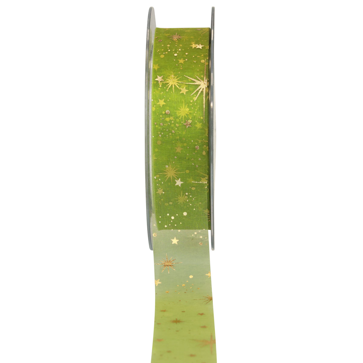 Produktname: Schleifenband Weihnachten, Organzaband Grün Sternmuster 25mm 25m