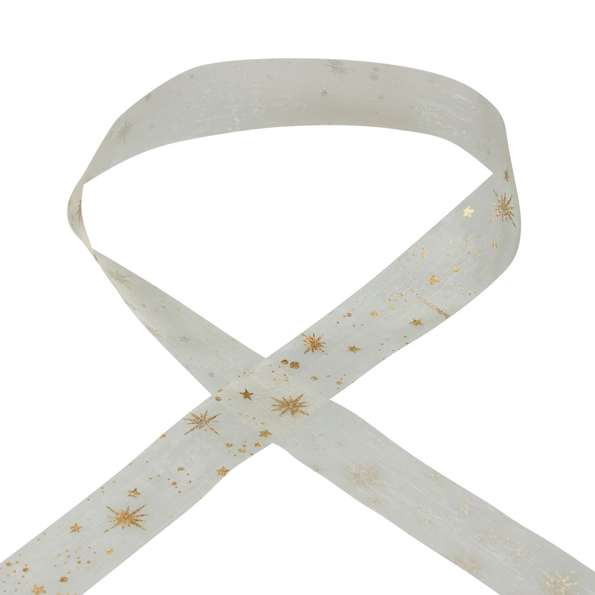Produktname: Schleifenband Weihnachten, Organzaband Weiß Sternmuster 25mm 25m