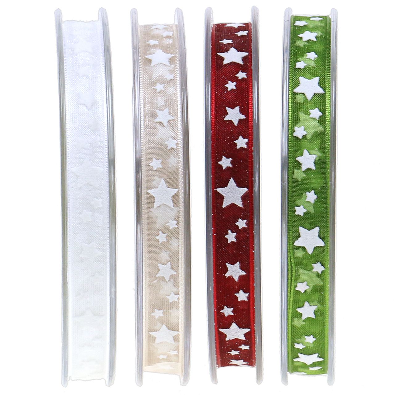 Weihnachtsband Organza mit Sternmotiv 10mm 20m