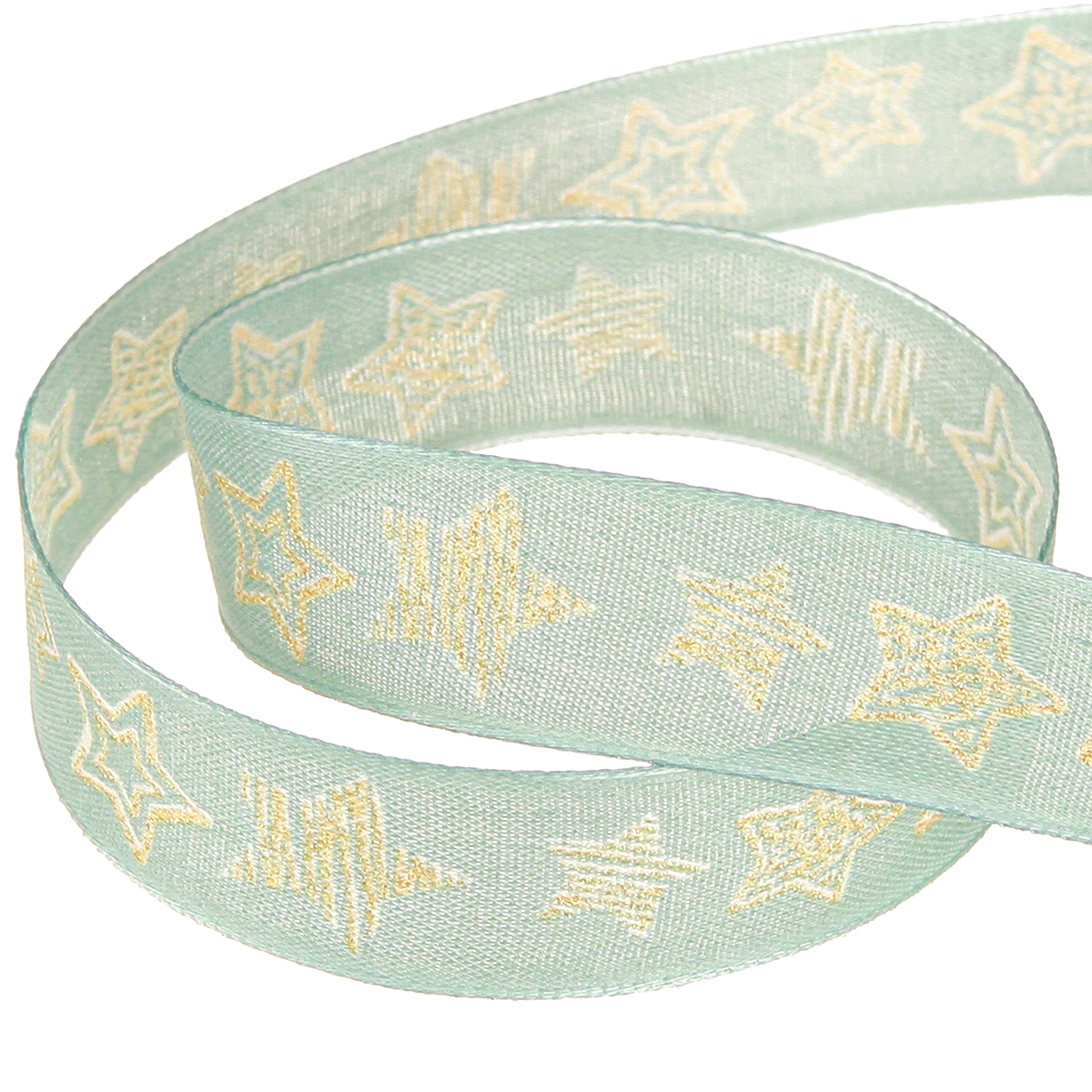 Weihnachtsband Sterne Geschenkband Türkis 25mm 18m