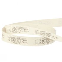 Produktname: Weihnachtsband mit Zuckerstangen Geschenkband Beige 25mm 15m