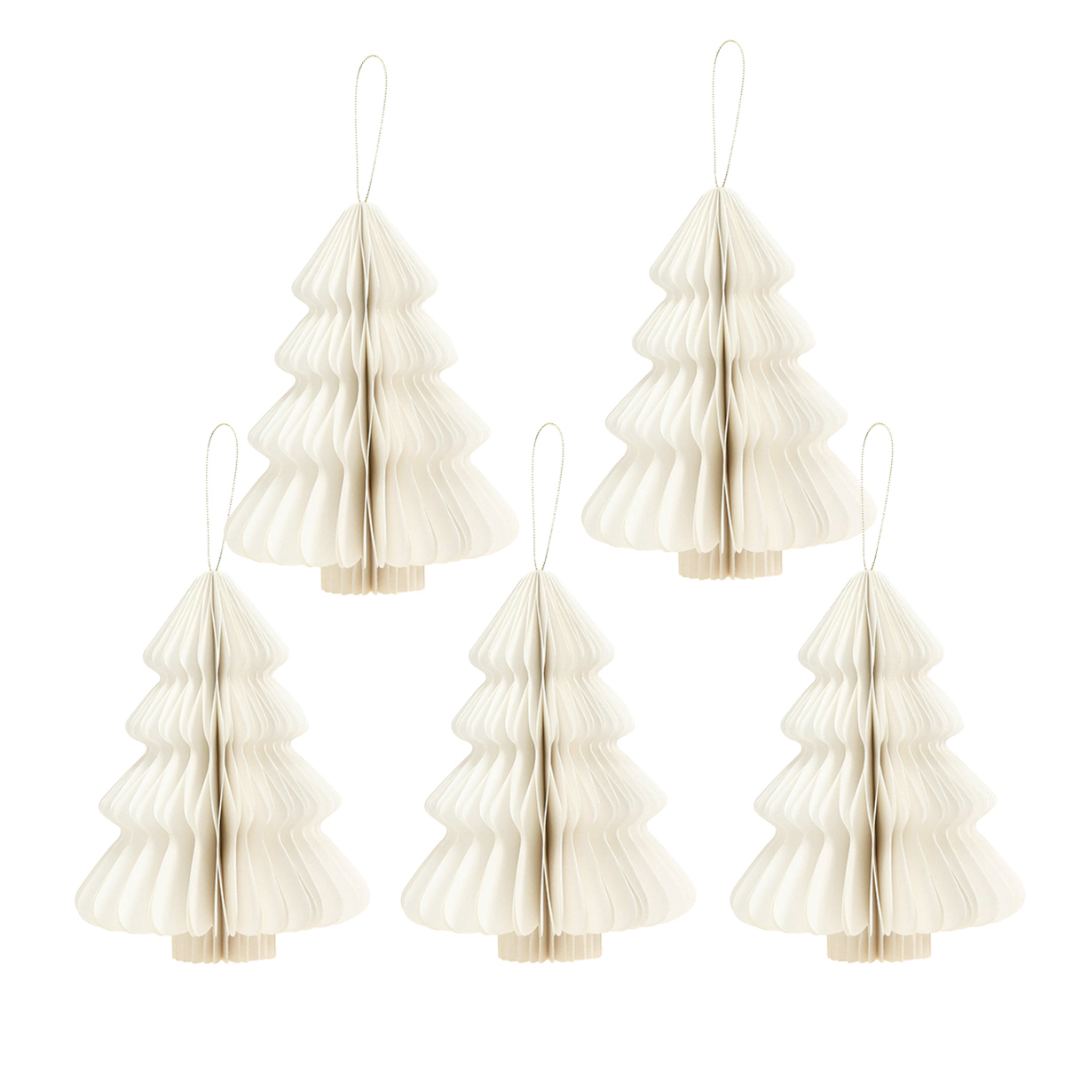Hängedeko Weihnachtsbaum Papier Weiß Silber 20cm 5er Set
