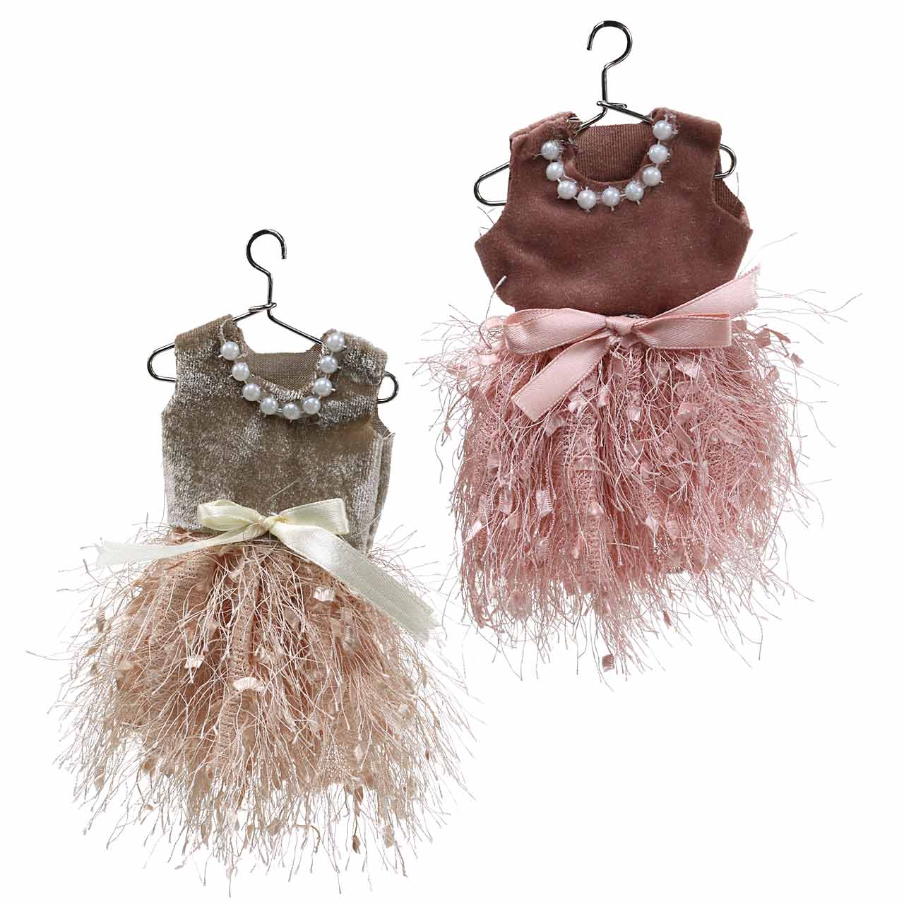 Weihnachtsdeko Elfenkleid am Bügel Rosa, Braun/Creme 16cm 4 St sortiert