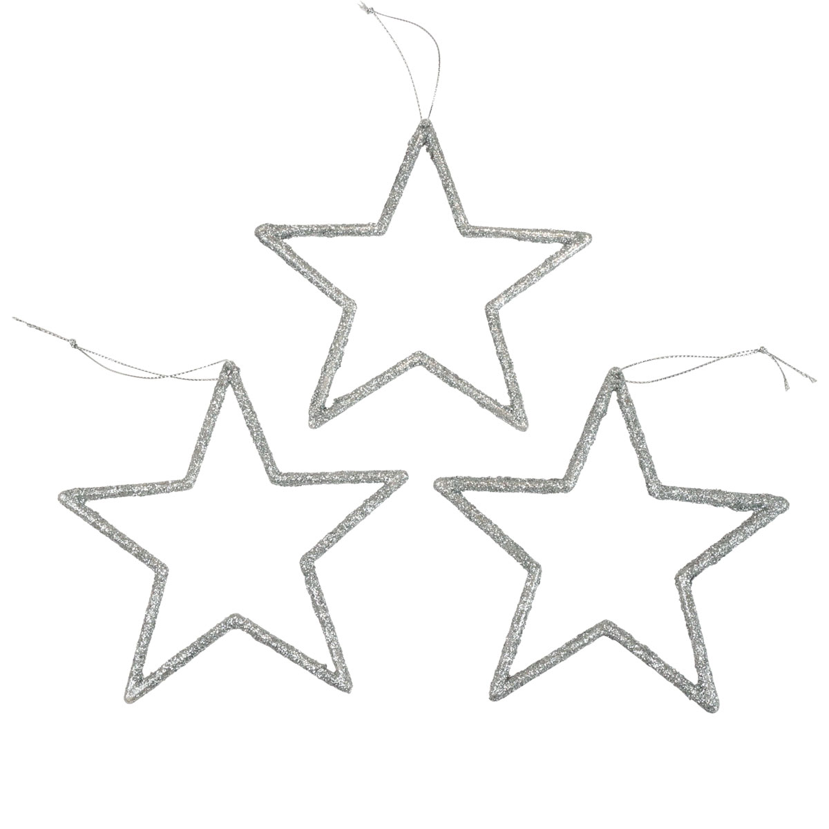 Weihnachtsdeko Stern Anhänger Silbern Glitter 12cm 12 Stück Weihnachtsbaum Deko Christbaumschmuck