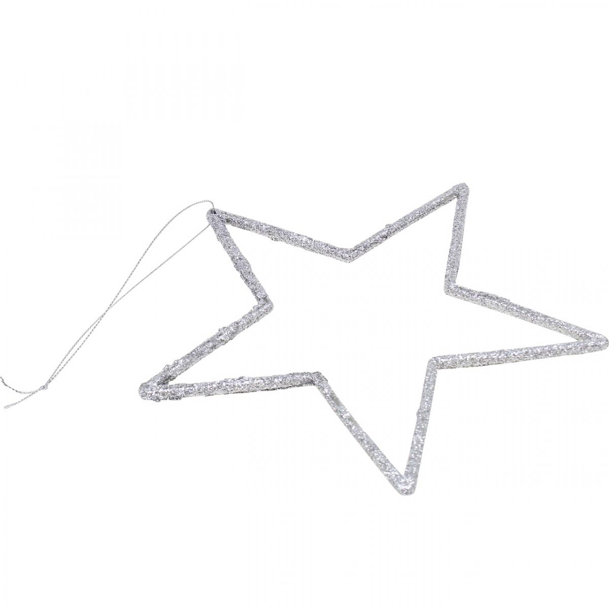 Produktname: Weihnachtsdeko Stern Anhänger Silbern Glitter 17,5cm 9 St