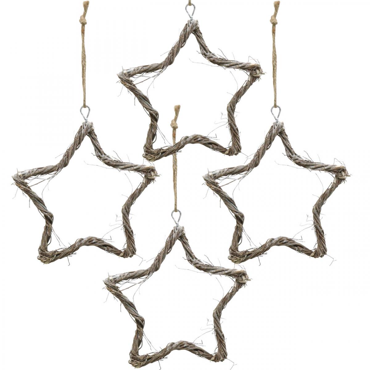Weihnachtsdeko Stern Ulme Sterne zum Aufhängen Weiß gewaschen 20cm 4St