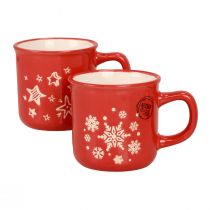 Weihnachtstasse Keramik Weihnachtspaar Rot Weiß H8,5cm 2St