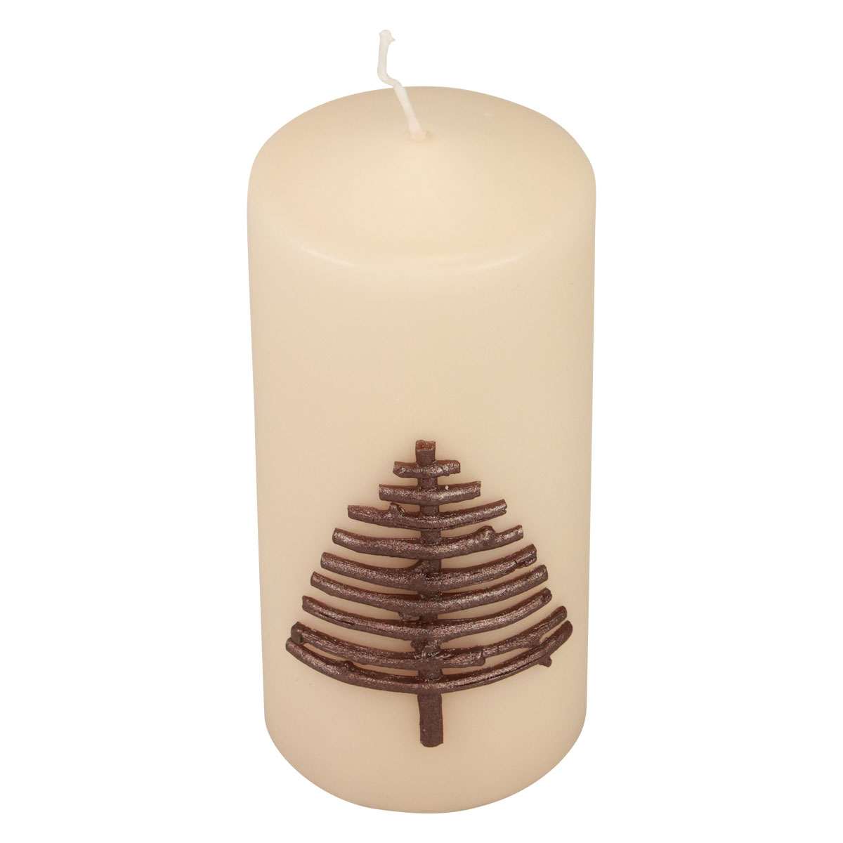 Weihnachtskerze Beige Tannenbaum Design 150/70mm 63h RAL