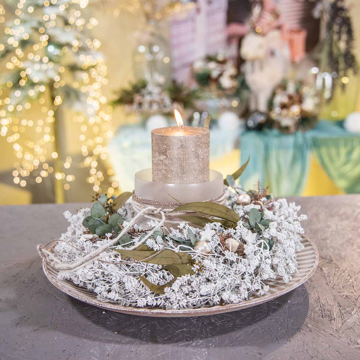 Bringen Sie den Weihnachtskranz an der Türe an oder nutzen Sie den Kranz aus Trockenblumen als Tischdeko. In jedem Fall wird der weiße Leinenkraut-Kranz Ihre Wohnung, Ihr Büro oder Ihr Schaufenster festlicher gestalten.