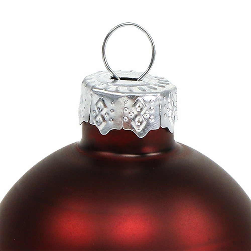 Die Weihnachtskugel aus Glas in Bordeaux wird in einer Box zu insgesamt 24 Stück geliefert. Mit der Metallöse ist jede Glaskugel in etwa 7 Zentimeter lang und hat einen Durchmesser von ungefähr 6 Zentimetern.