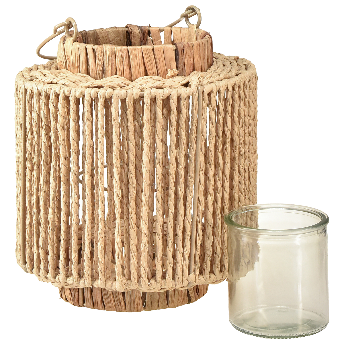 Windlicht Bast mit Henkel Naturfaser Metall Ø19cm H21cm