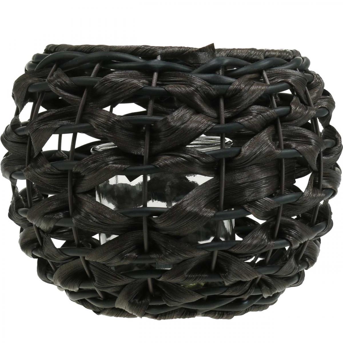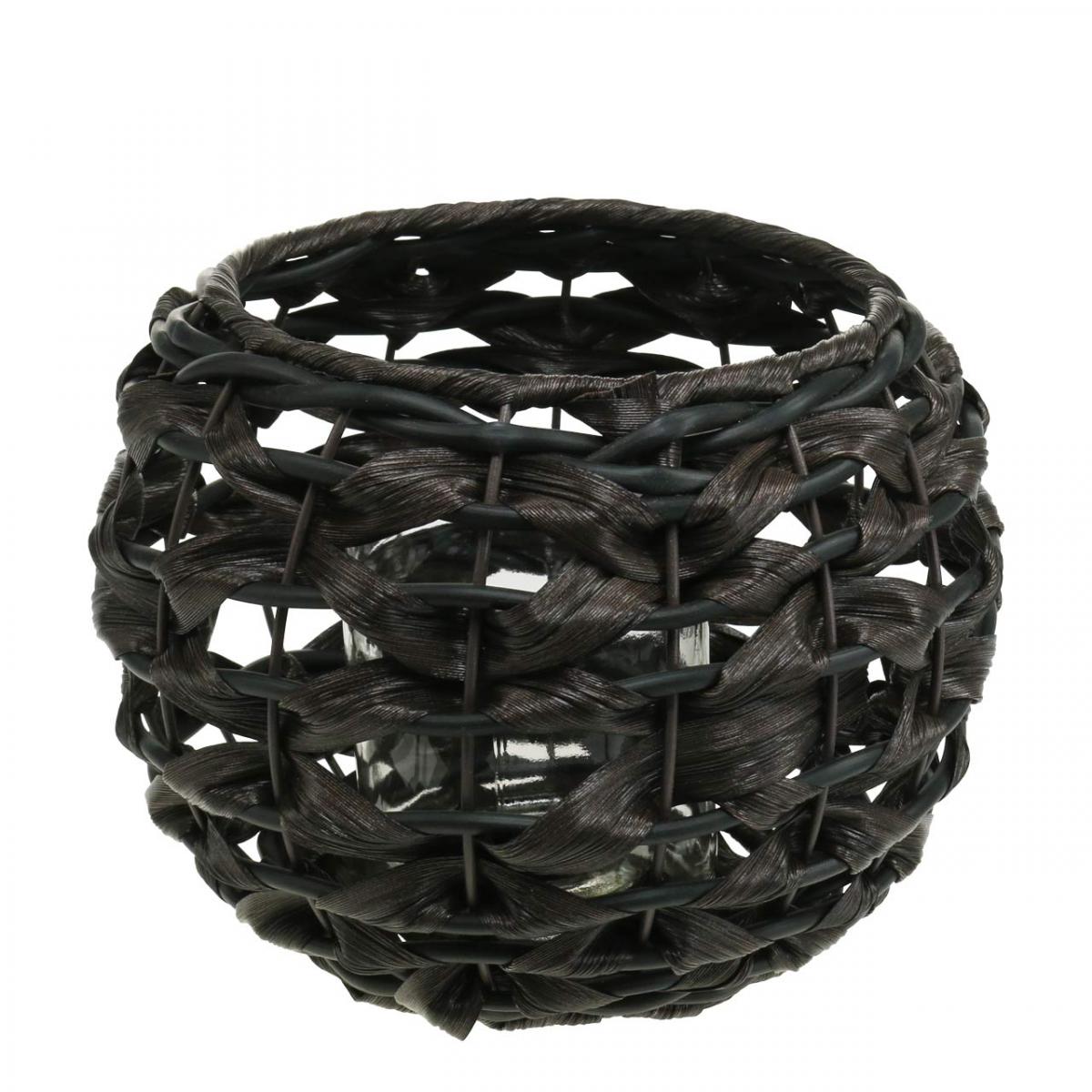 Produktname: Windlicht geflochten Schwarz, Braun Rattan Kerzenglas Ø23cm H18cm