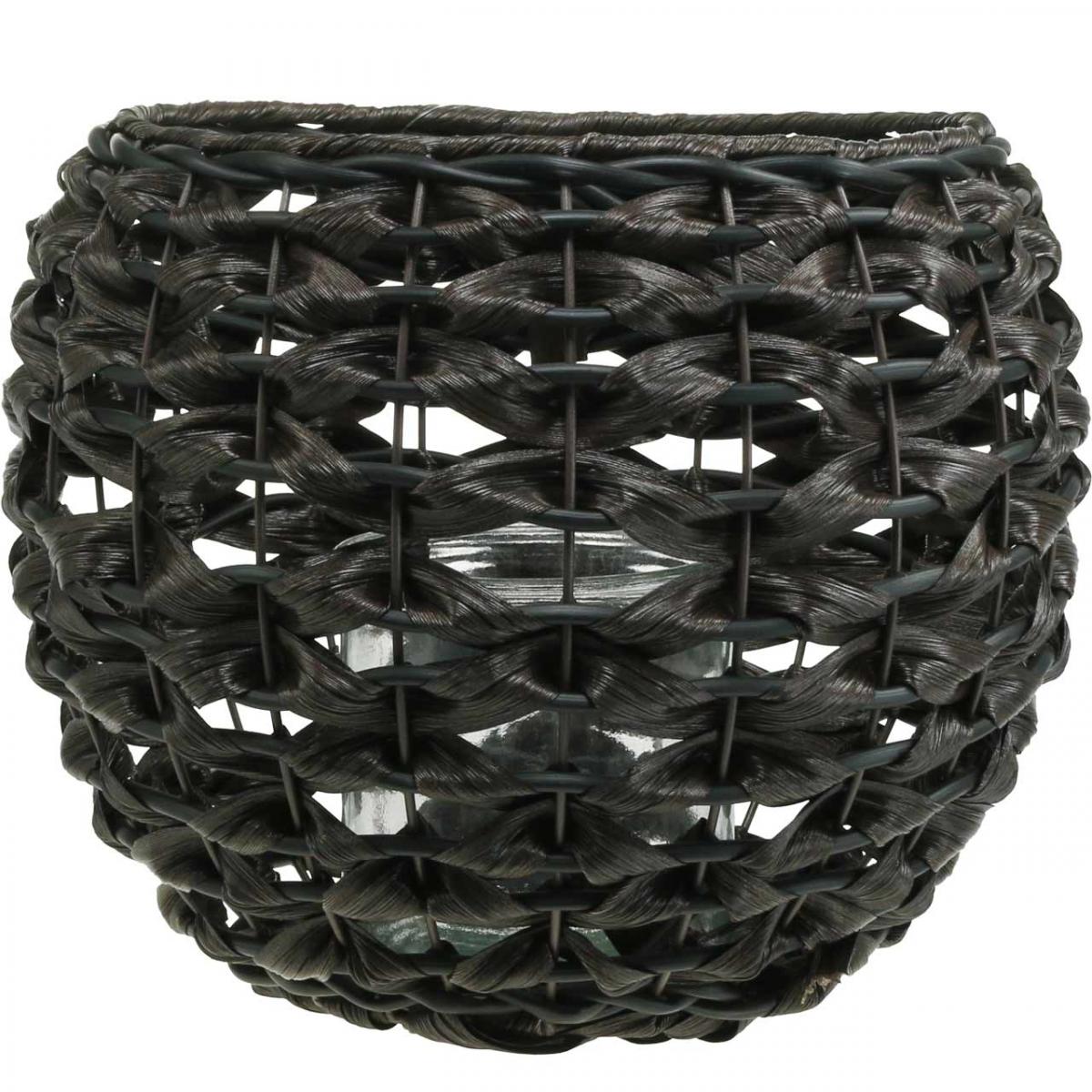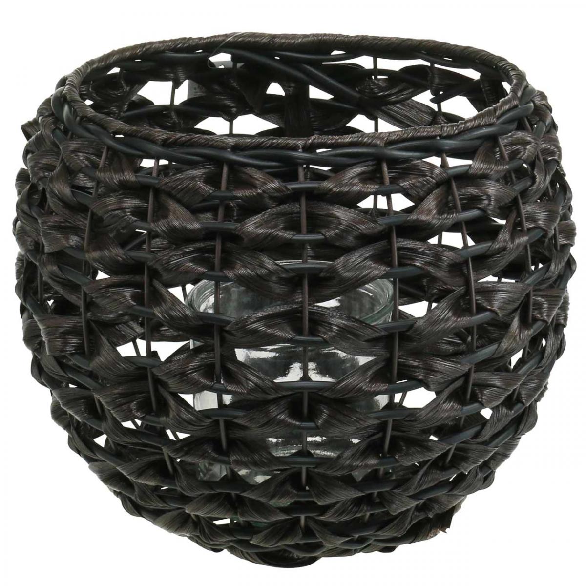 Produktname: Windlicht geflochten Schwarz, Braun Sommerdeko Ø31cm H25cm