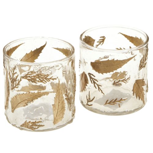 Windlicht Glas mit goldenen Blättern Ø7,5cm H8,5cm 2St