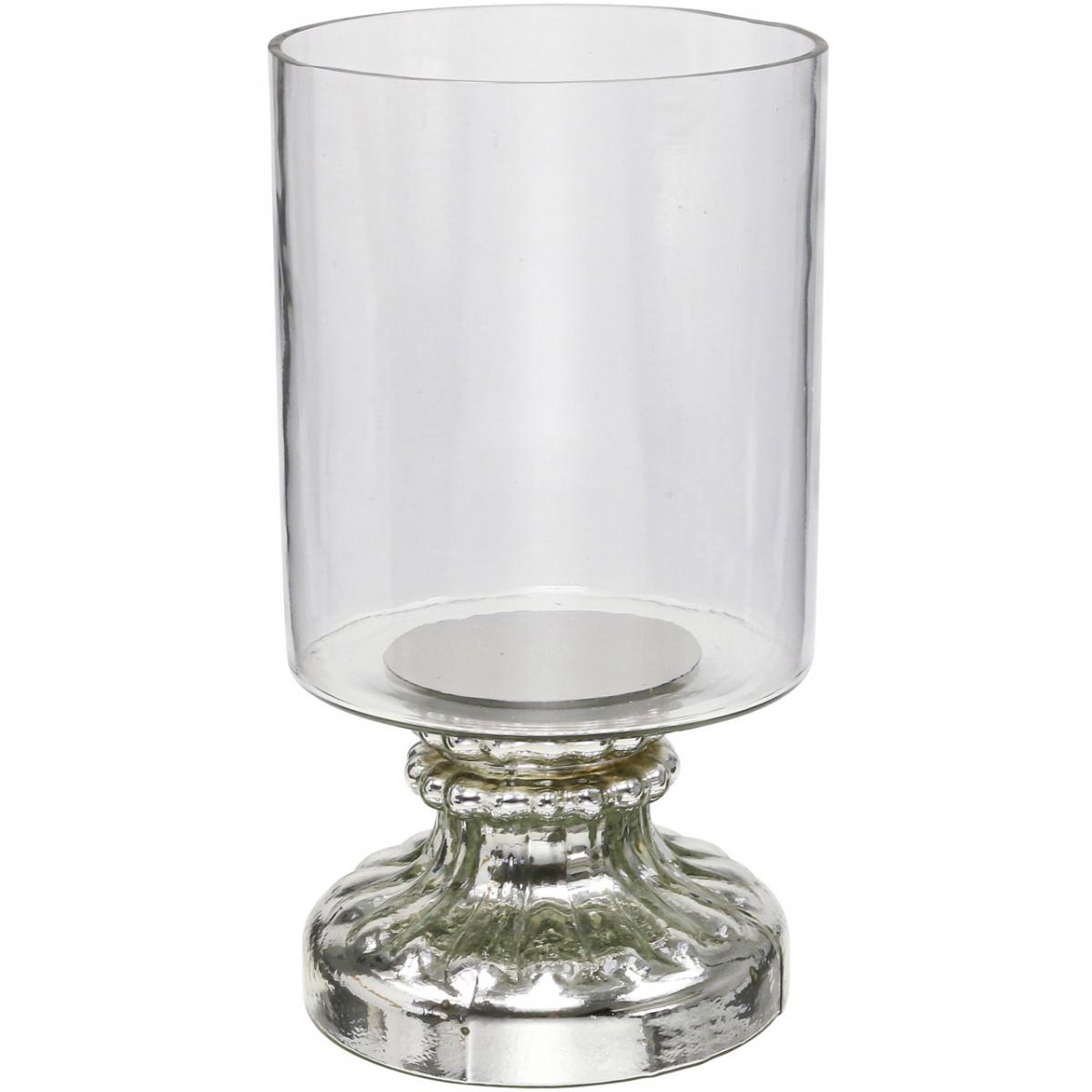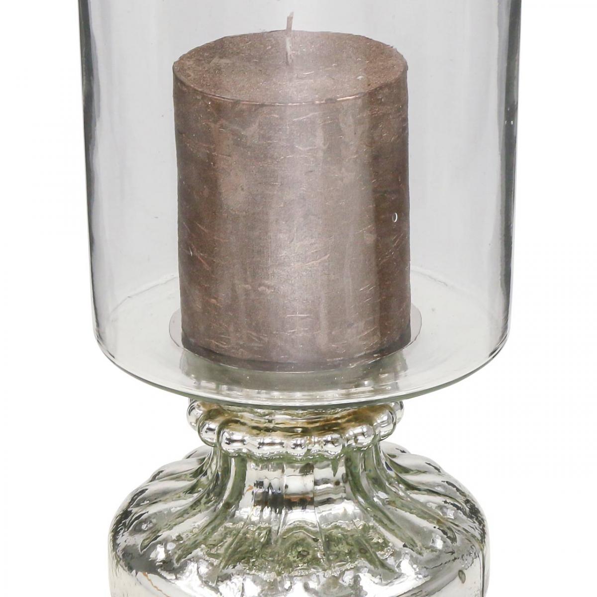 Windlicht Glas Kerzenglas Antik Look Silber Ø13cm H24cm