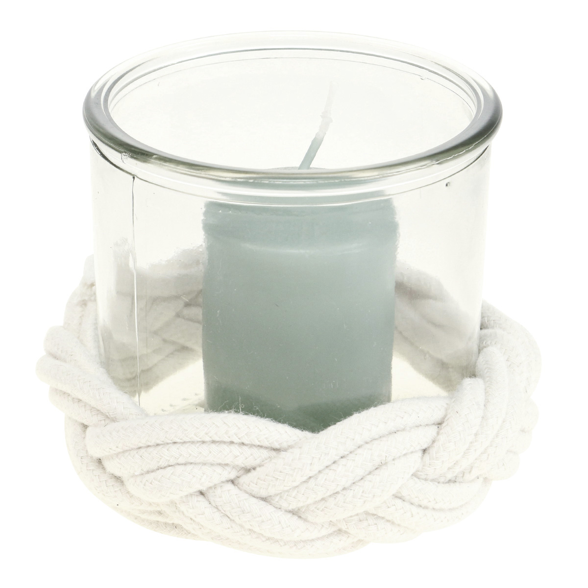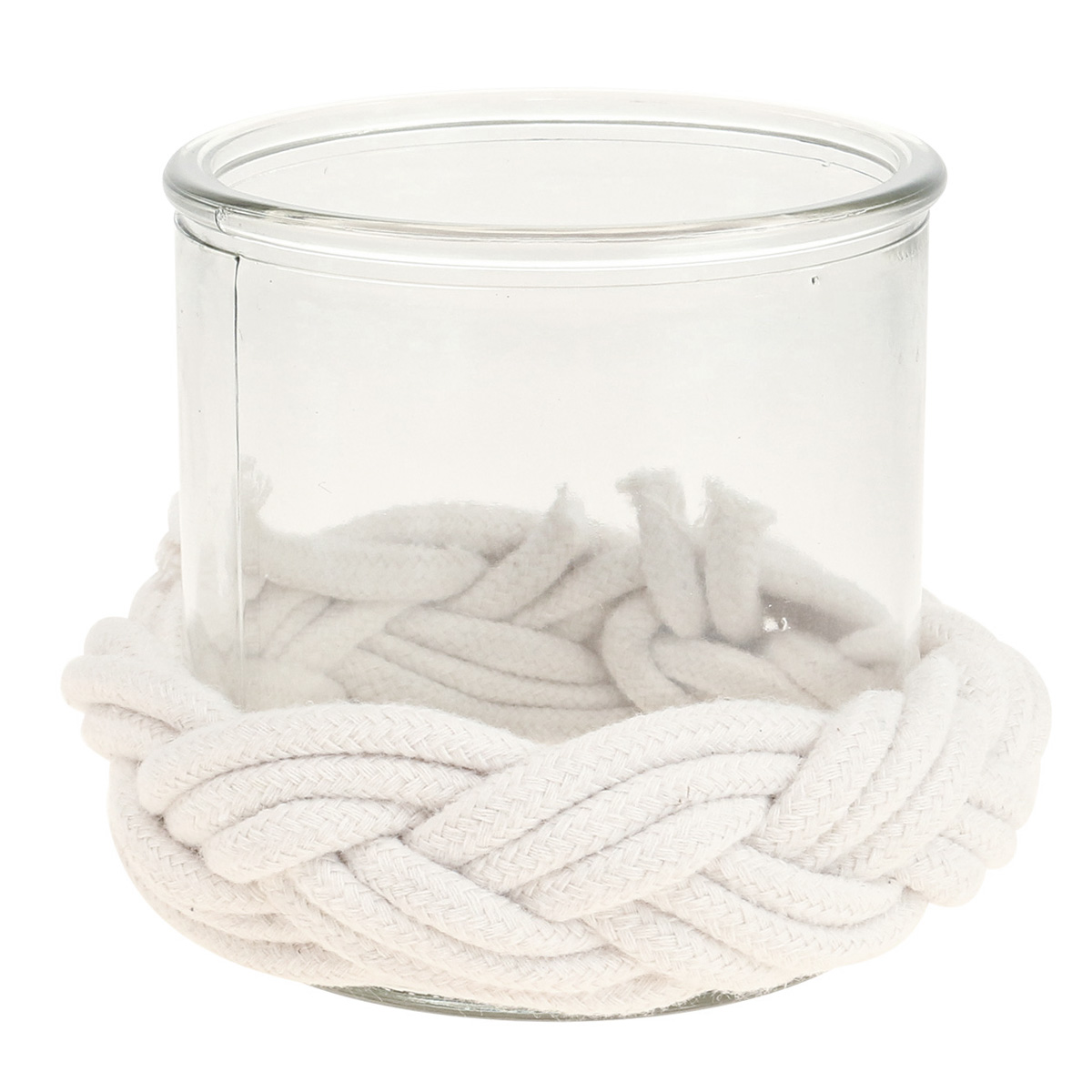 Windlicht Glas Makramee Weiß geflochten Ø13cm H10cm