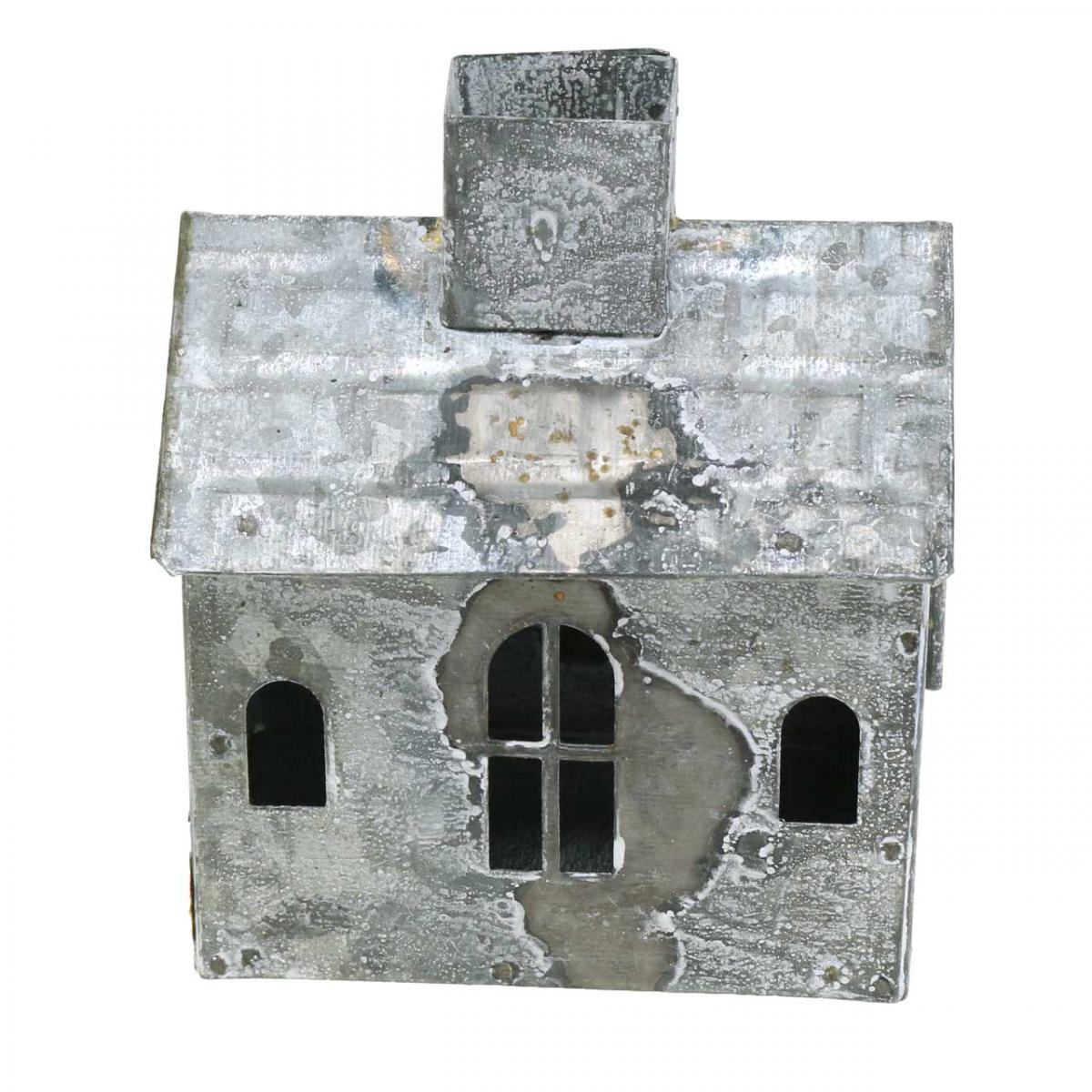 Windlicht Haus Metall Shabby Chic Weiß gewaschen, Rost H11cm